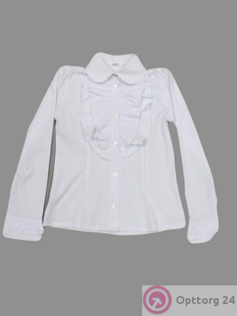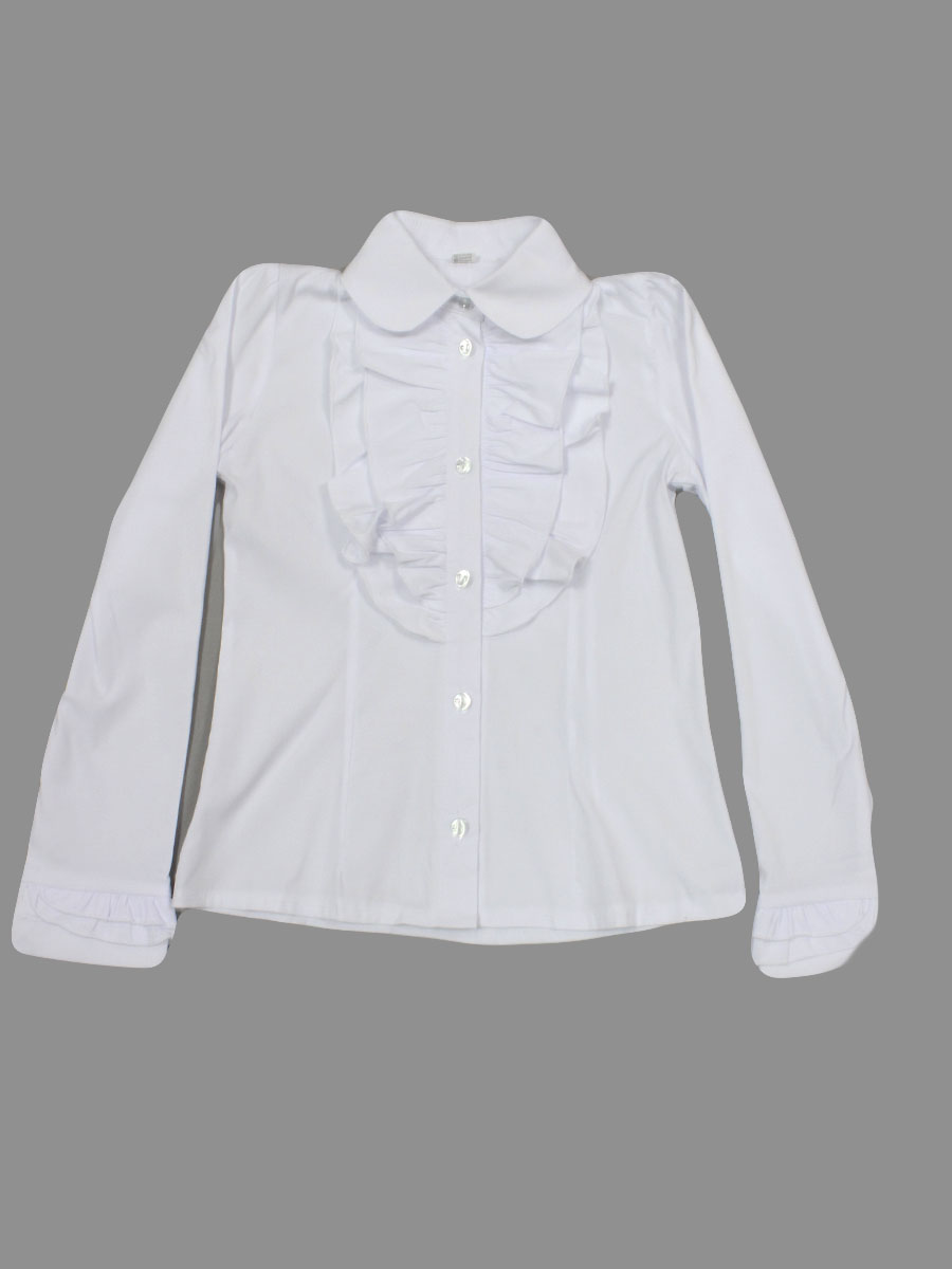 Детская блуза белого цвета, Школьная модель с длинным рукавом.