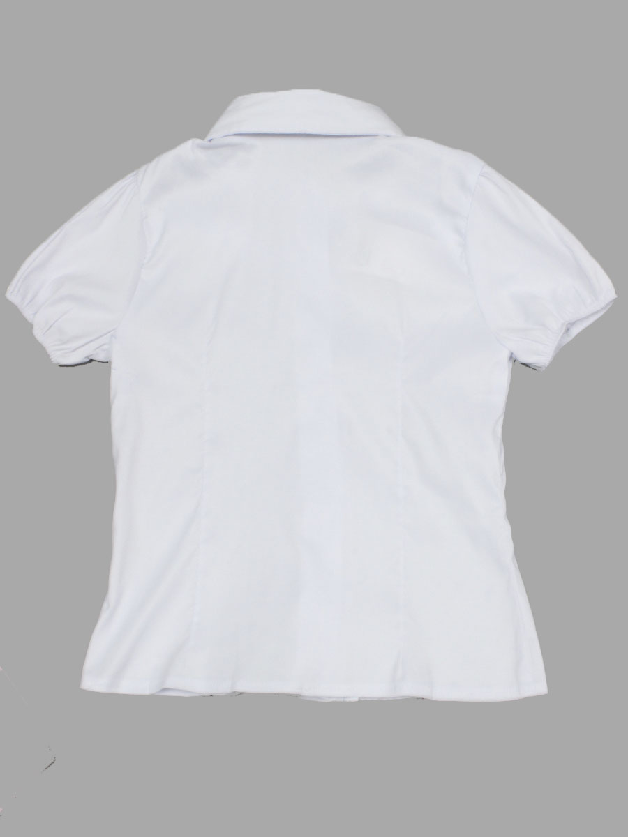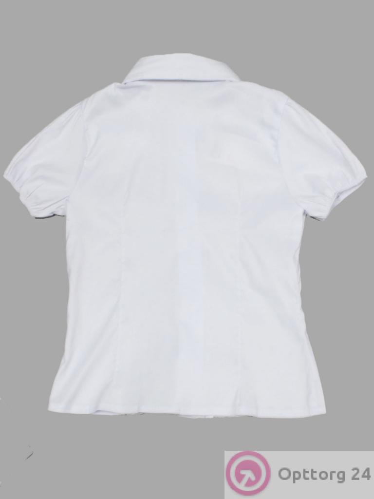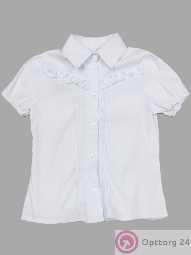Детская блузка белого цвета с рюшем в области груди и коротким рукавом оптом