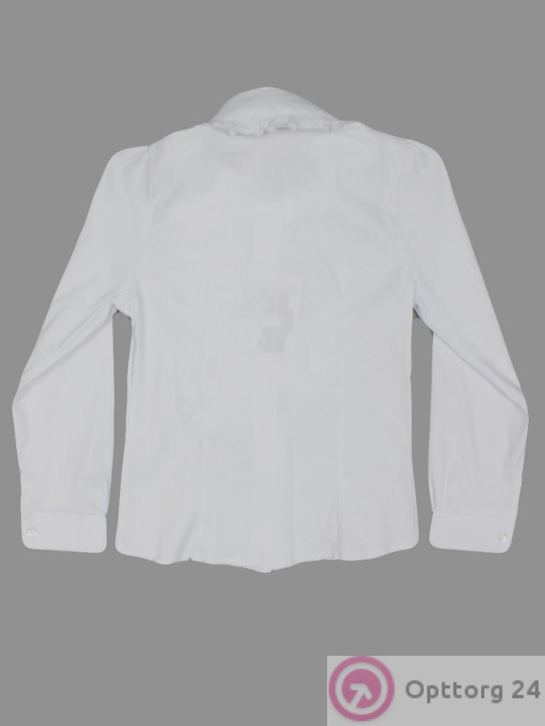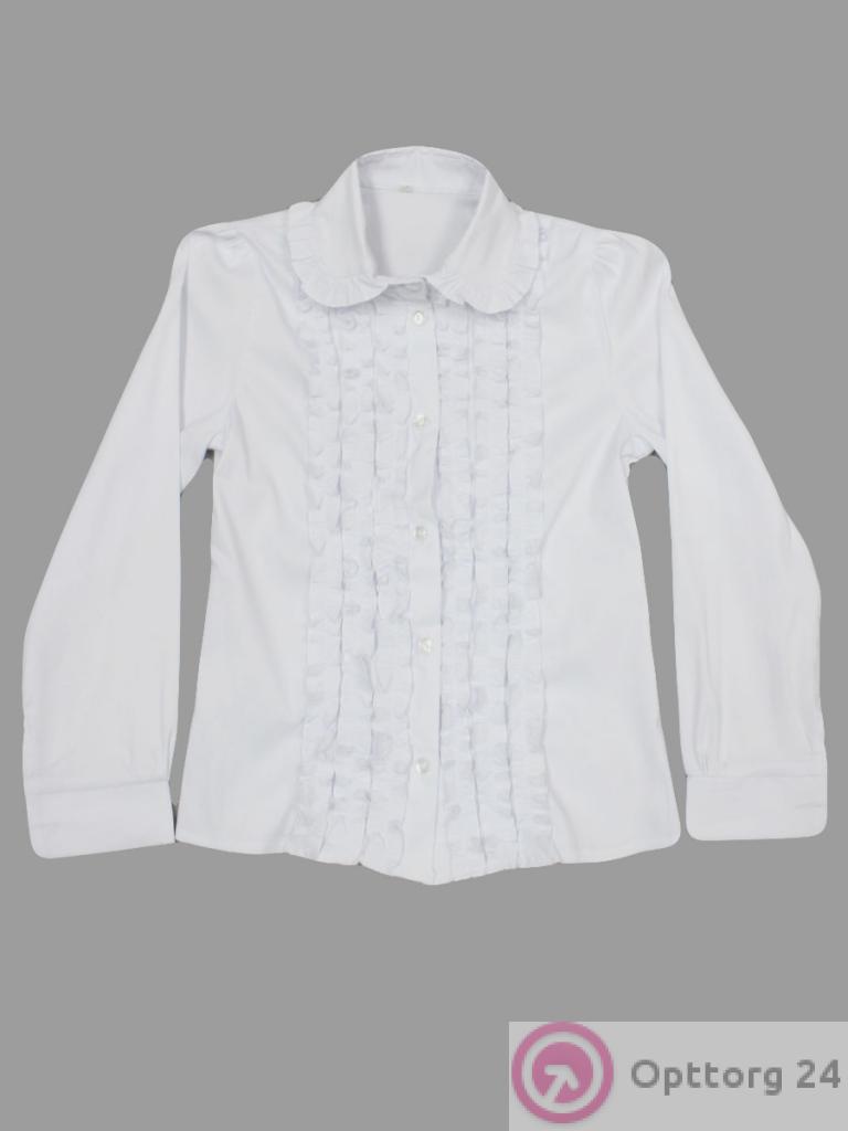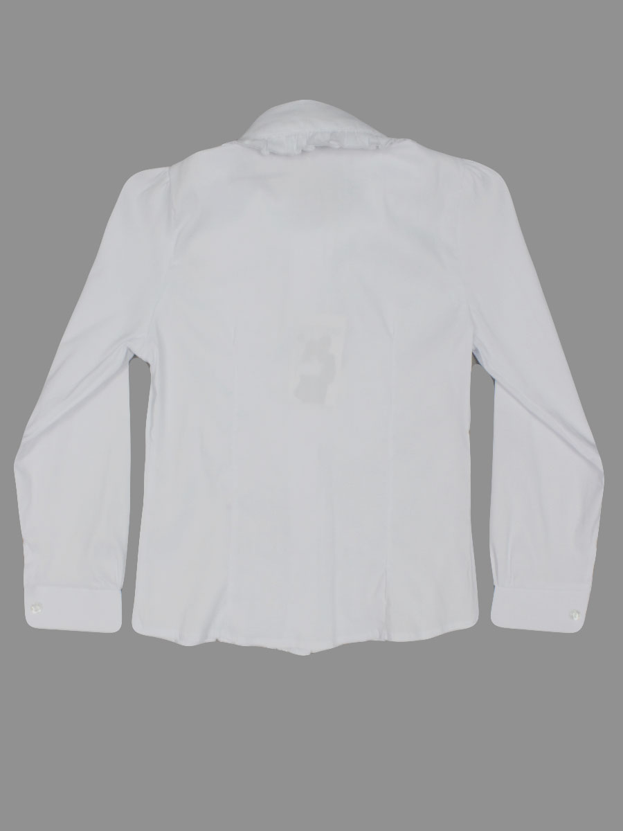 Рубашка школьная для девочки модель белого цвета с длинным рукавом. На изделии расположен Рюш в области груди.