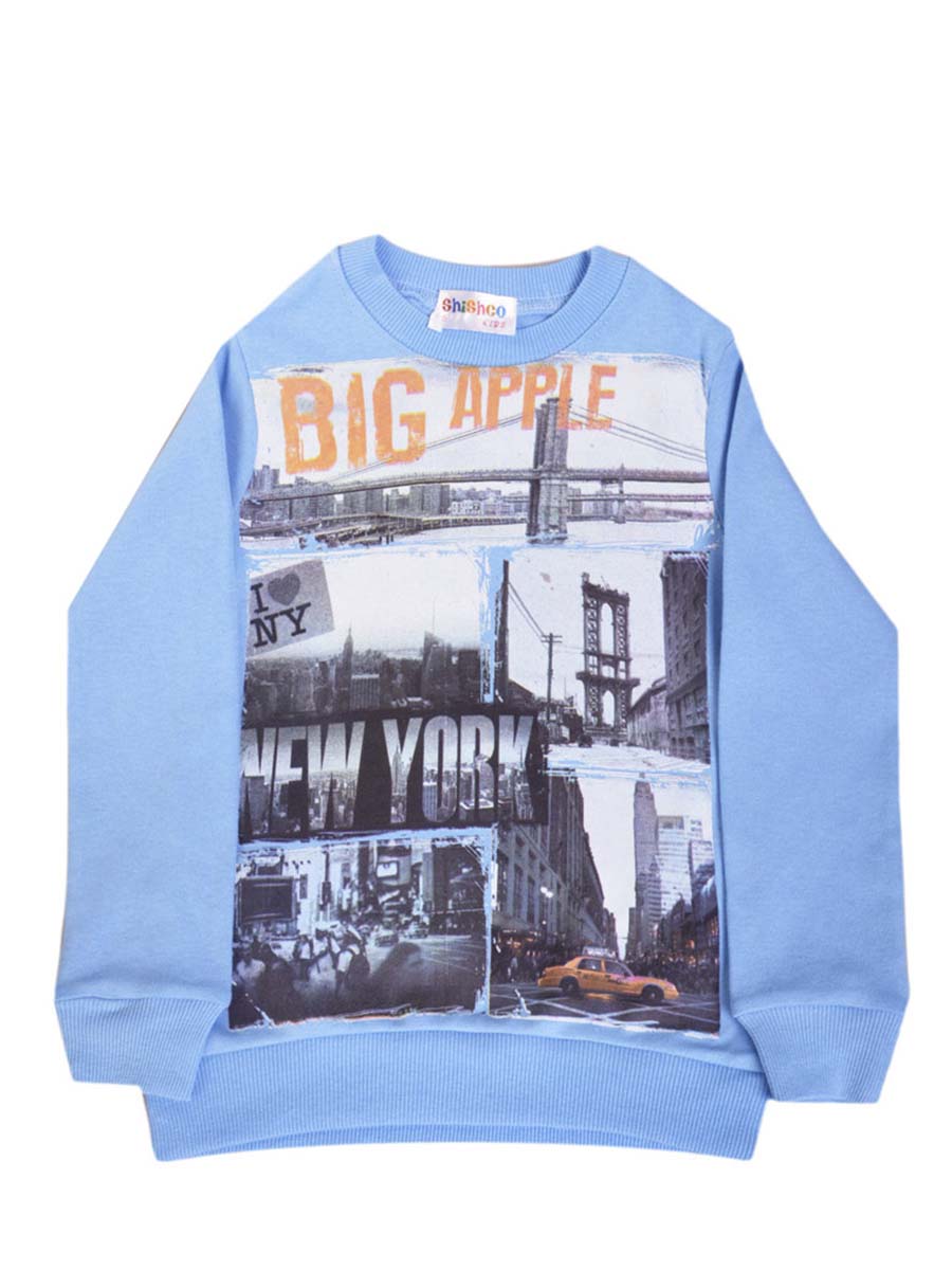 Толстовка для мальчика голубого цвета с принтом на передней части изедлия.
