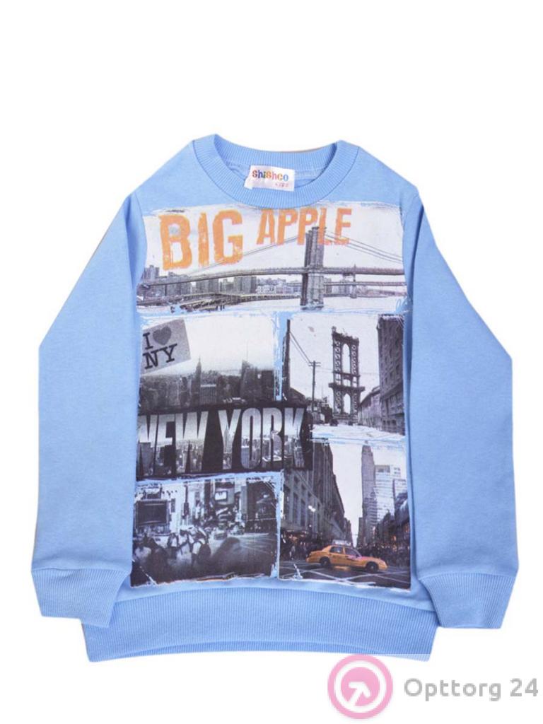 Детская толстовка-лонгслив голубого цвета с принтом. оптом