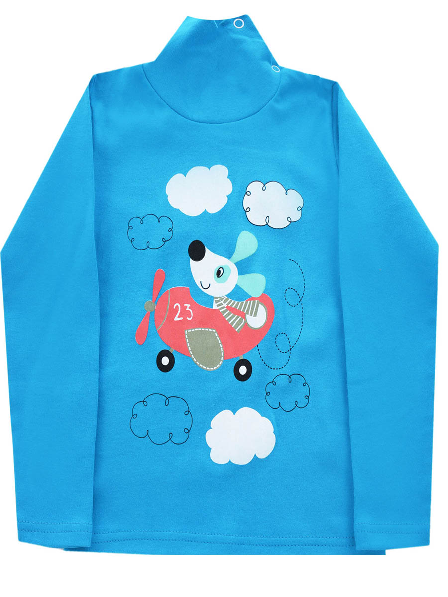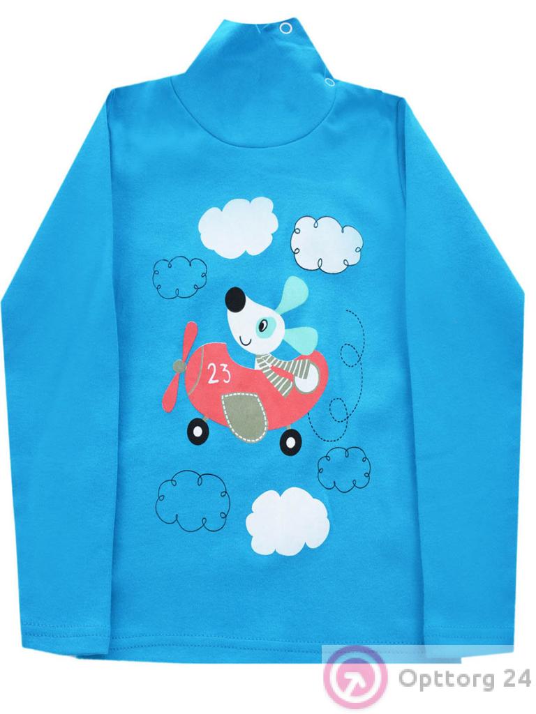Детская водолазка для мальчика нежно-голубого цвета с длинным воротом на кнопках.