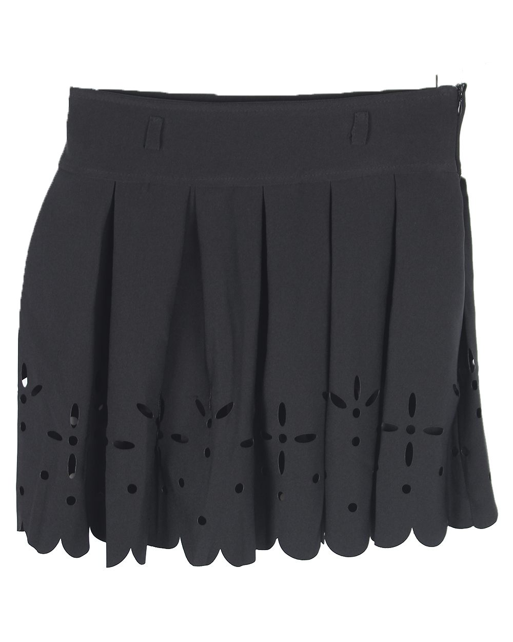 Детская волнистая юбка черного цвета с мелким перфорированным узором на нижней части изделия.