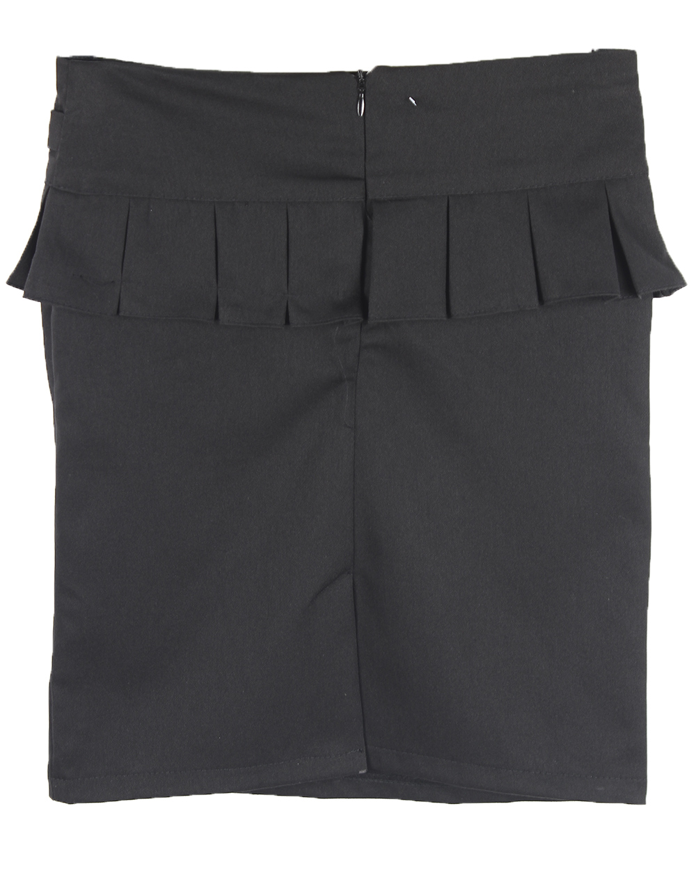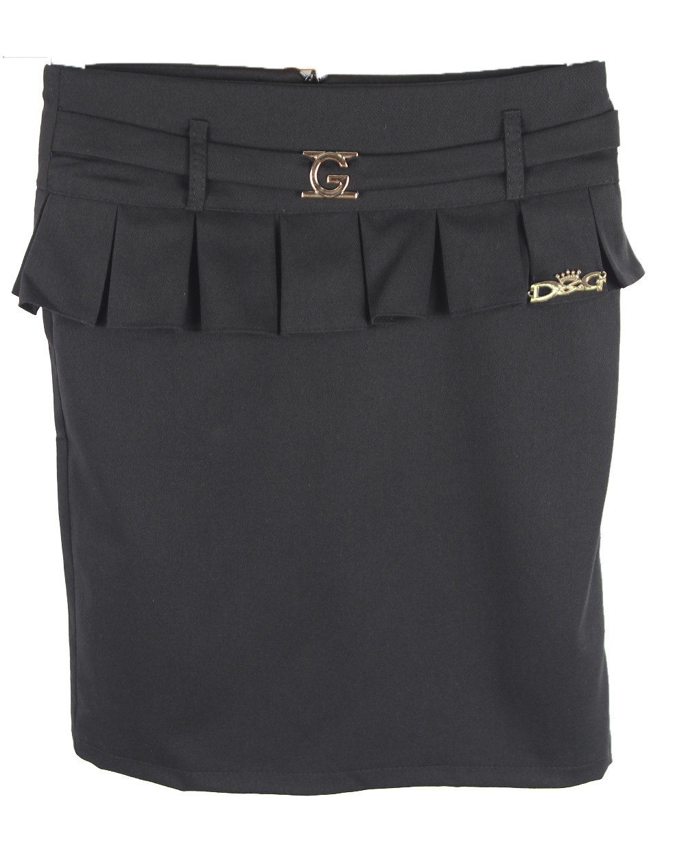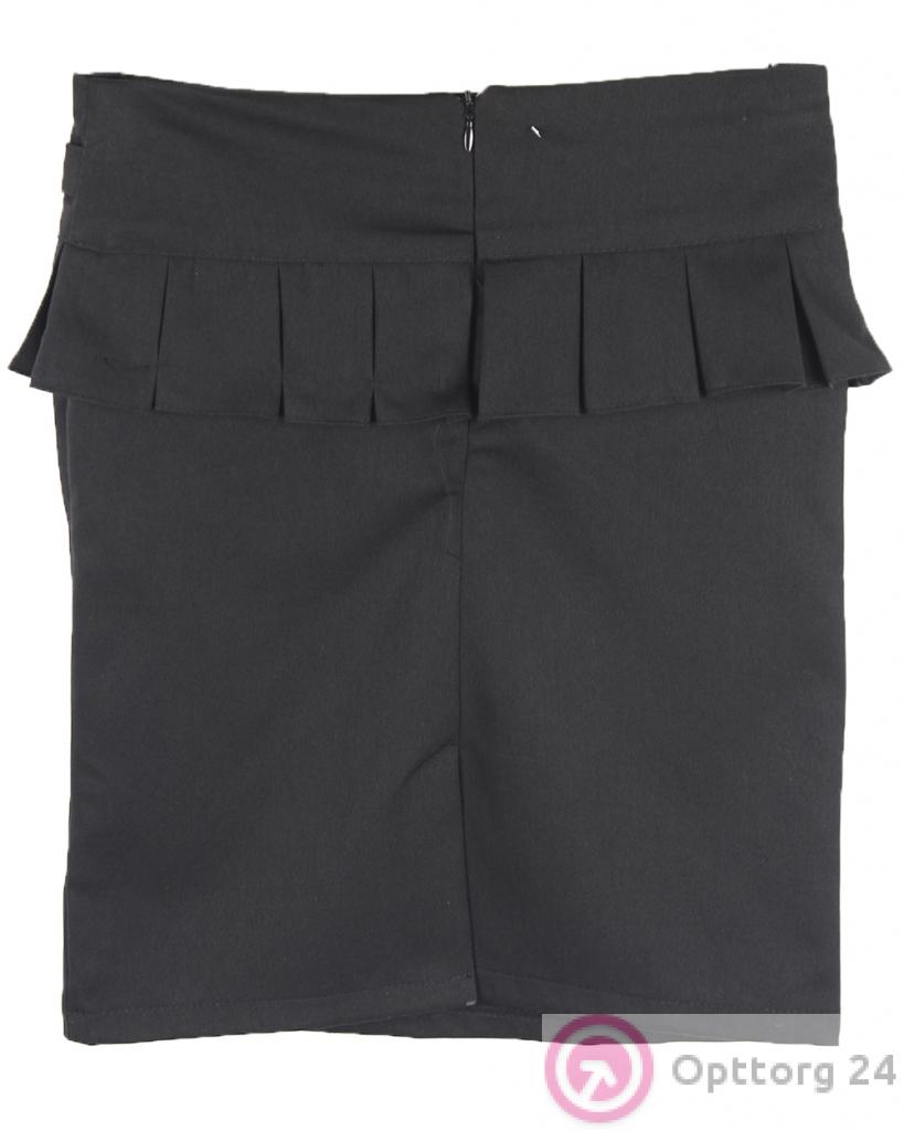 Детская юбка черного цвета с украшением на поясе и небольними складками по оси изделия.