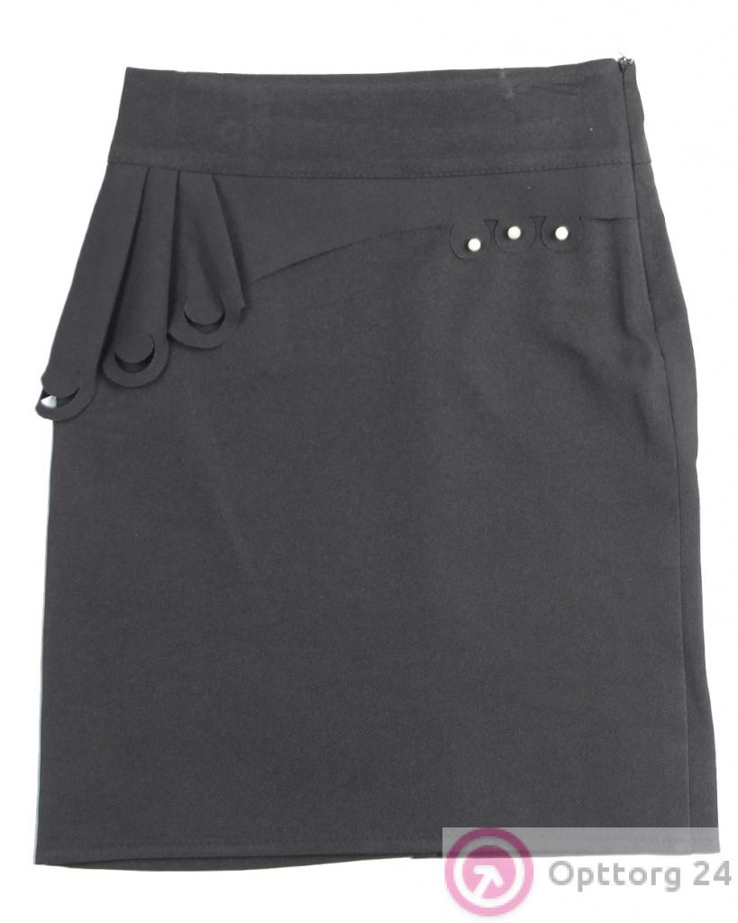 Юбка детская черного цвета прямого кроя с украшением в области пояса изделия.