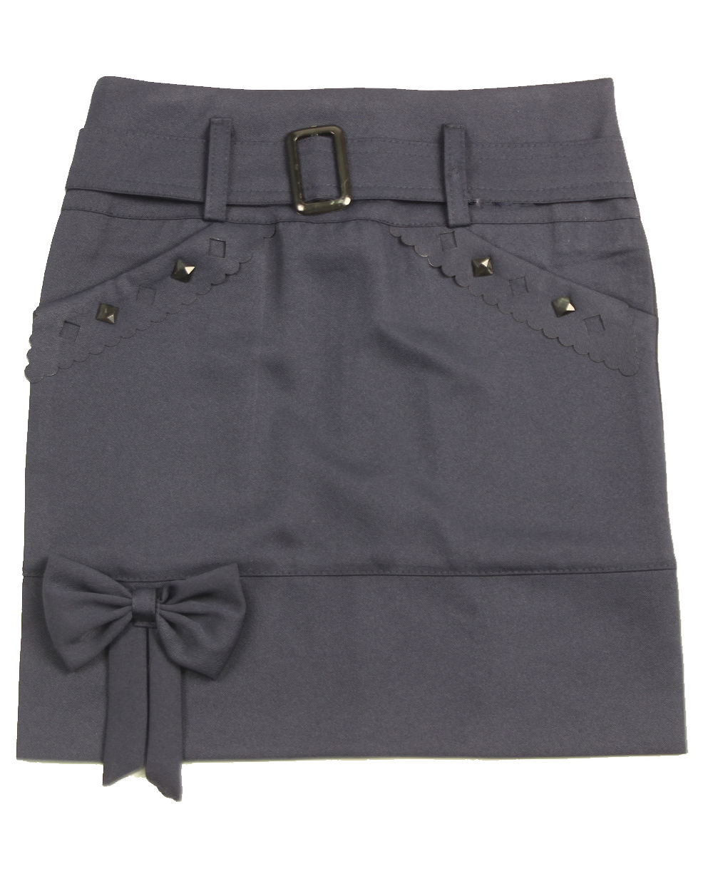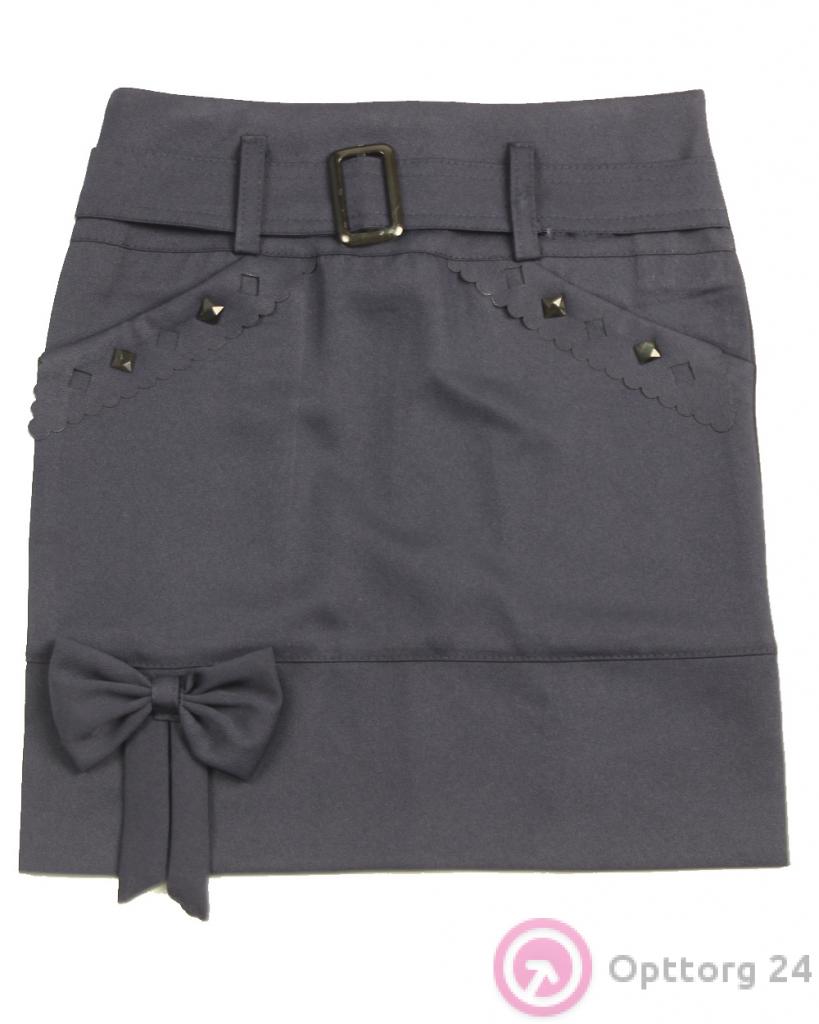 Школьная юбка для девочки тёмно синего цвета с поясом и бантом.