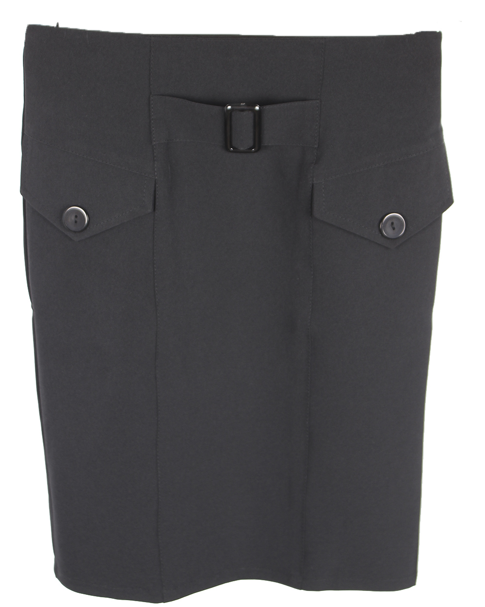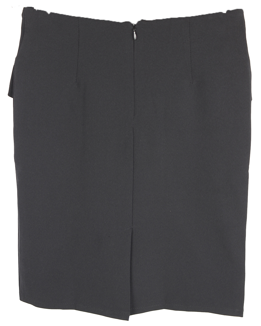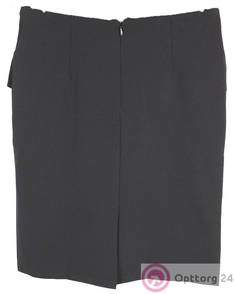 Детская юбка черного цвета с иммитацией карманов. Модель с поясом и вертикальной прострочкой.