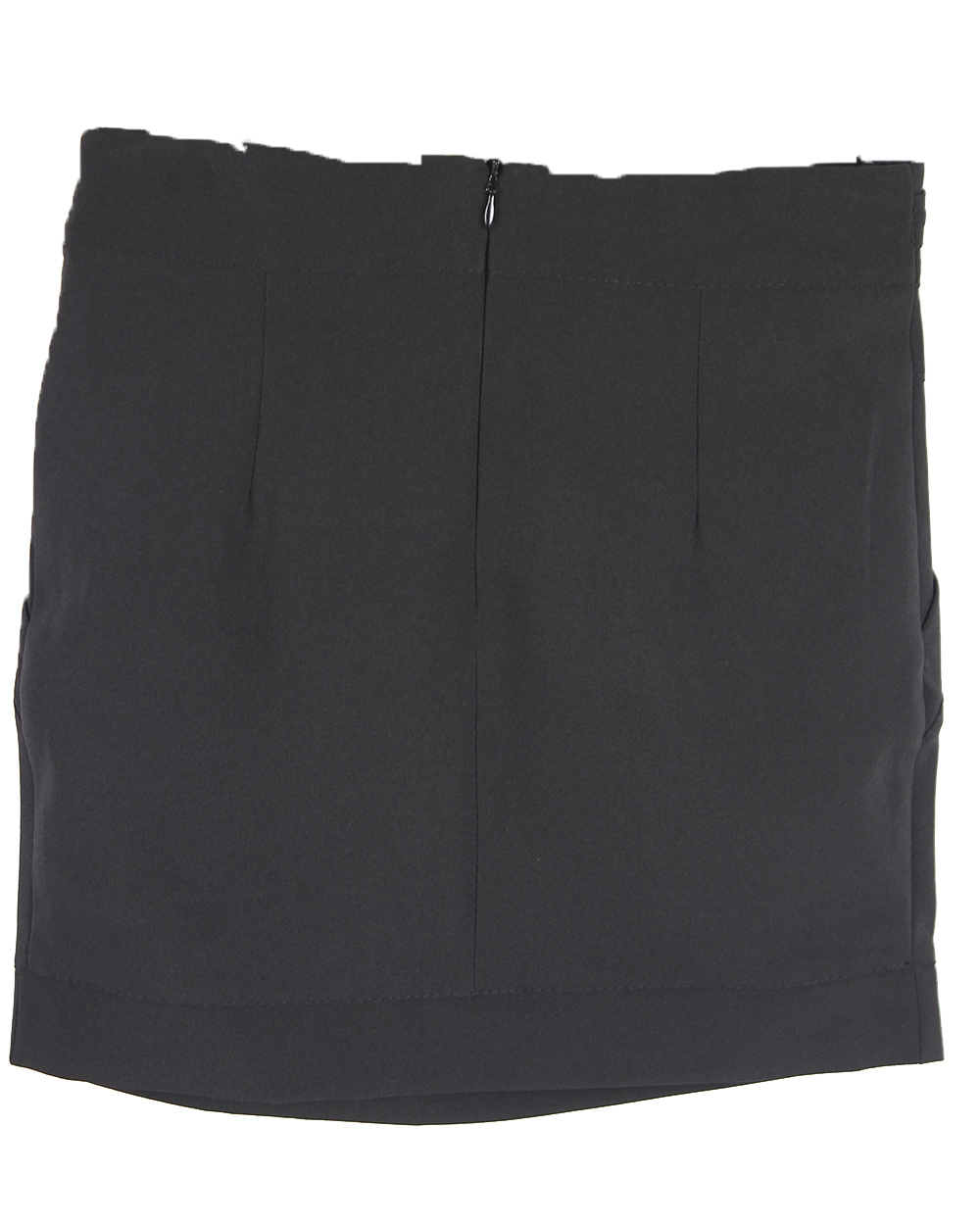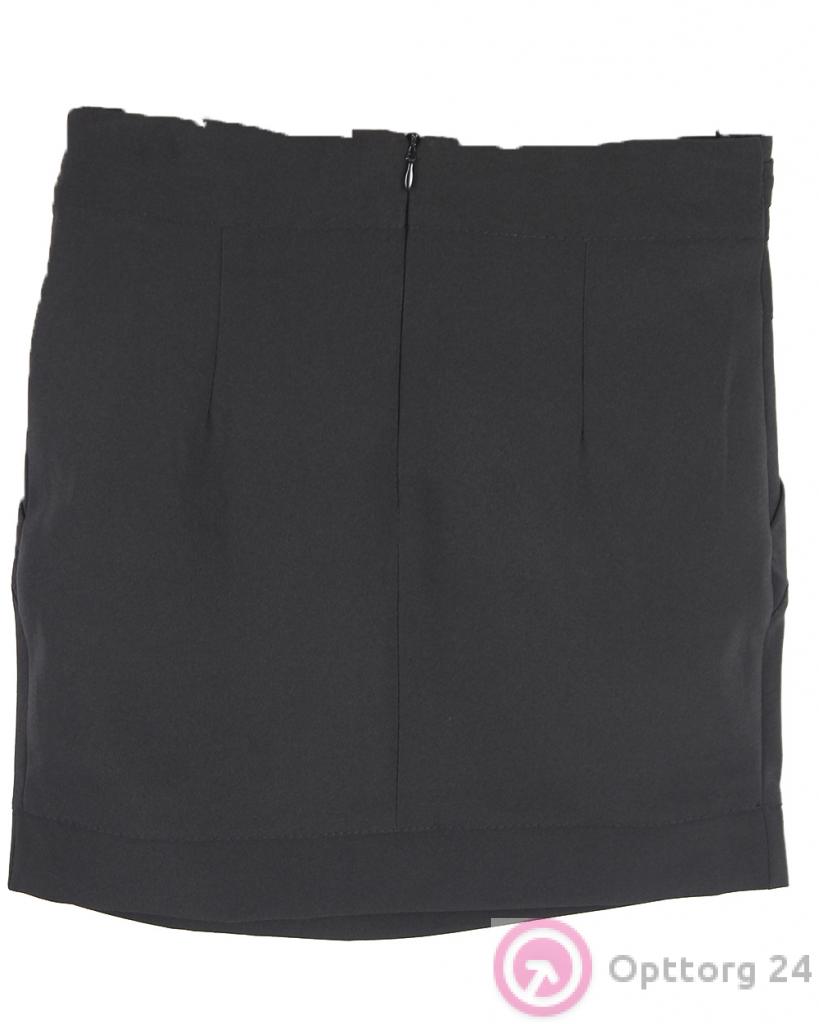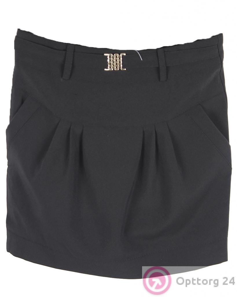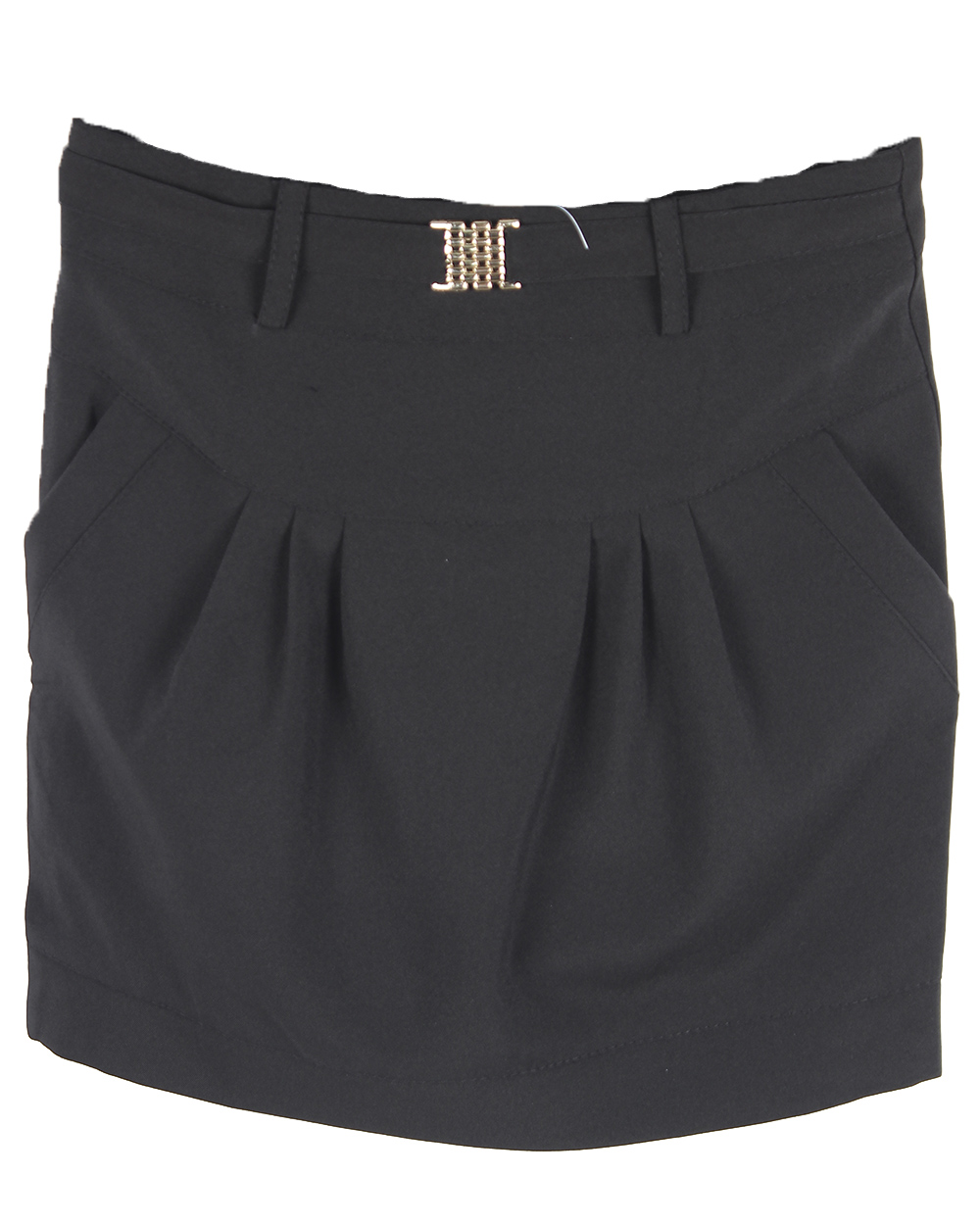 Юбка детская черного цвета со складками и поясом. На поясе расположенно золотистое украшение.