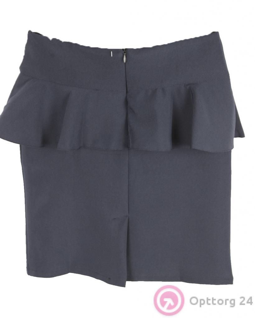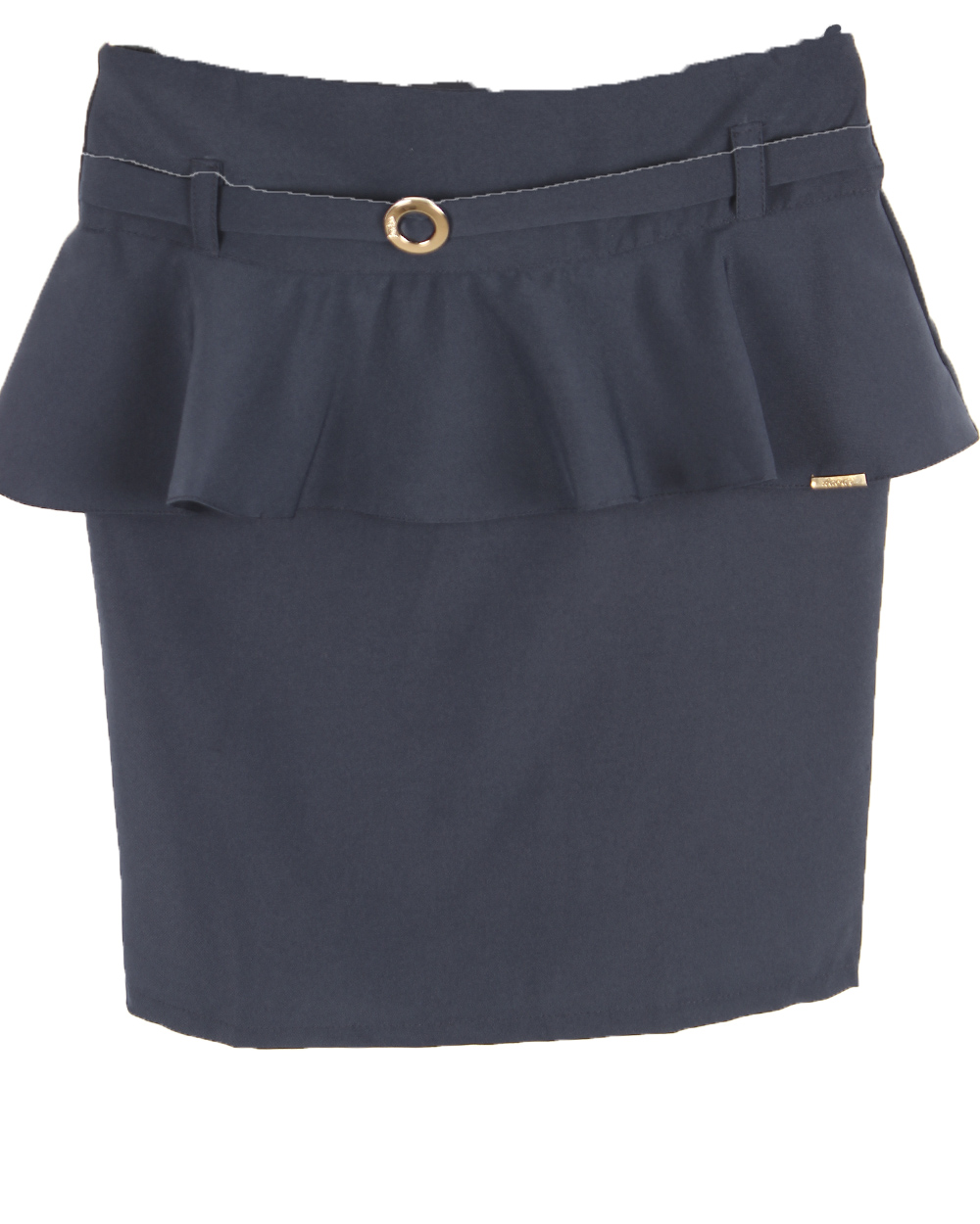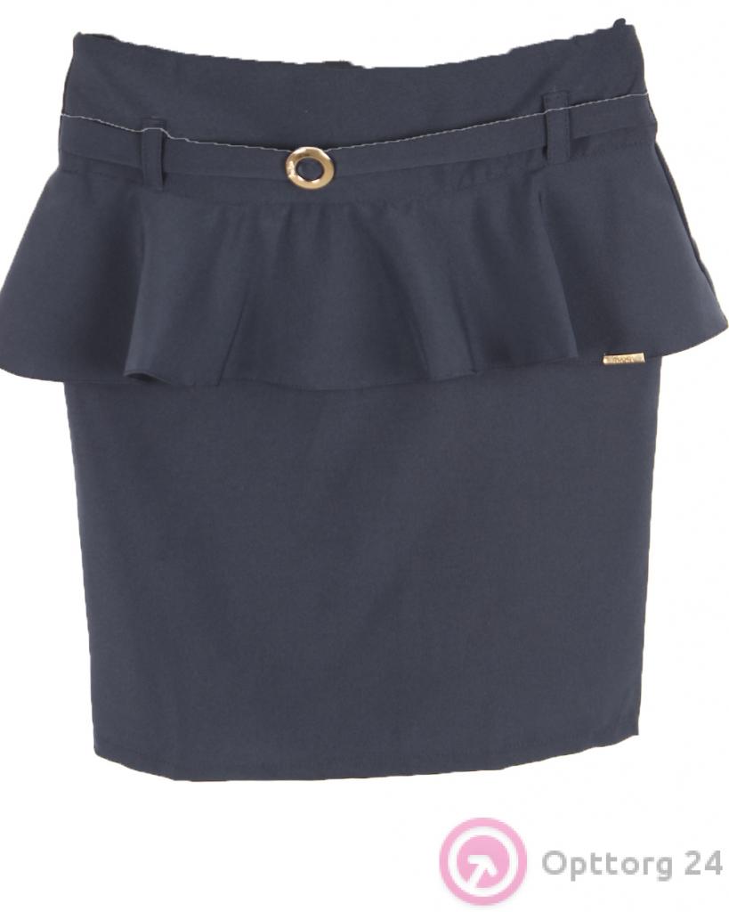 Детская юбка для девочки. Модель синего цвета с волнистой вставной по кругу юбки.