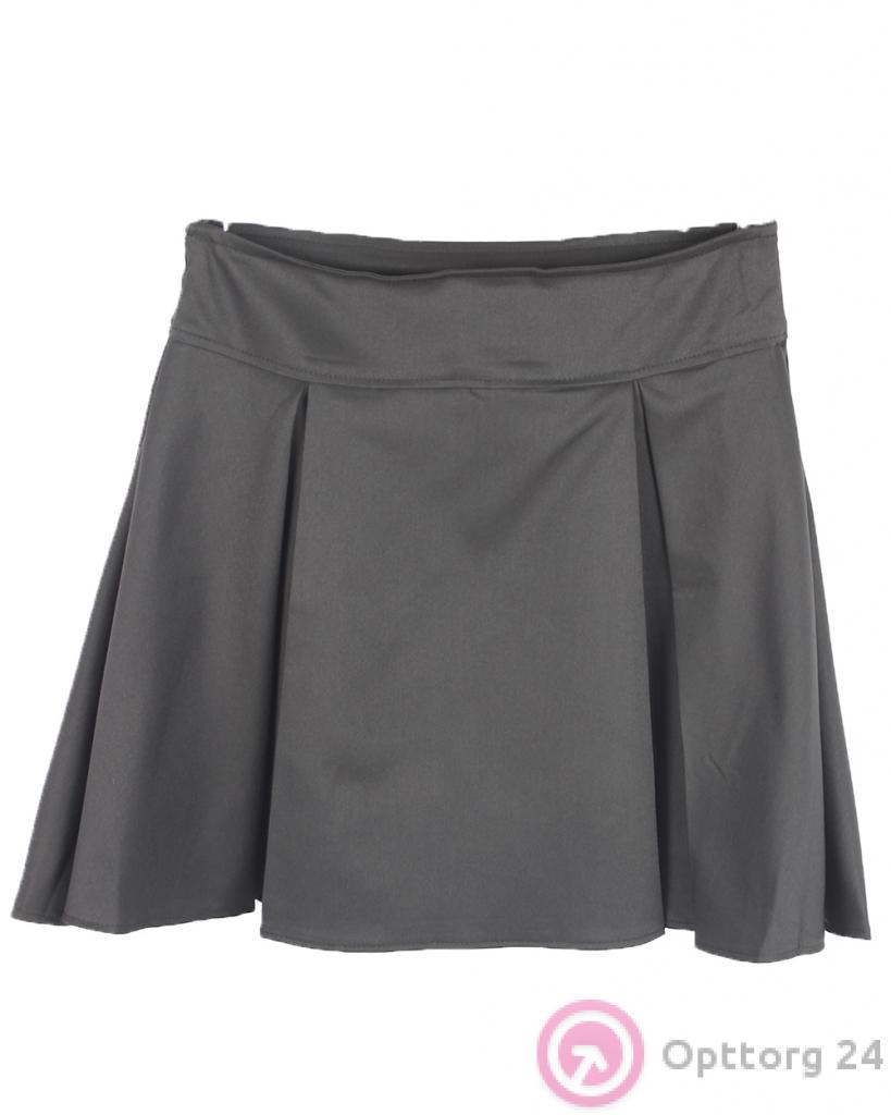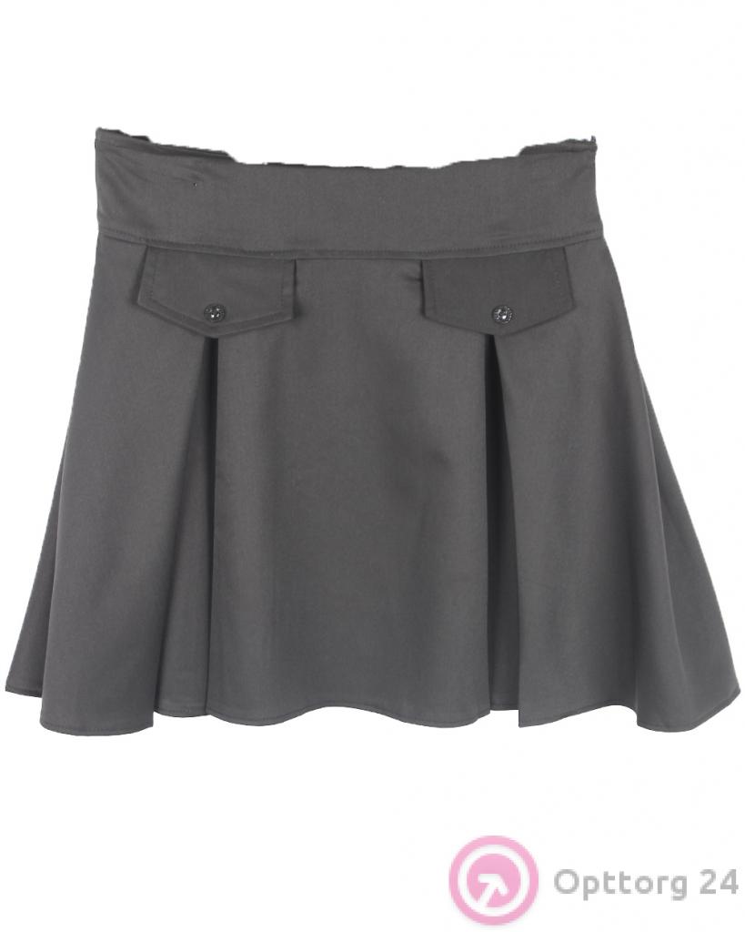 Детская юбка (волна) серого цвета с иммитацией карманов. оптом