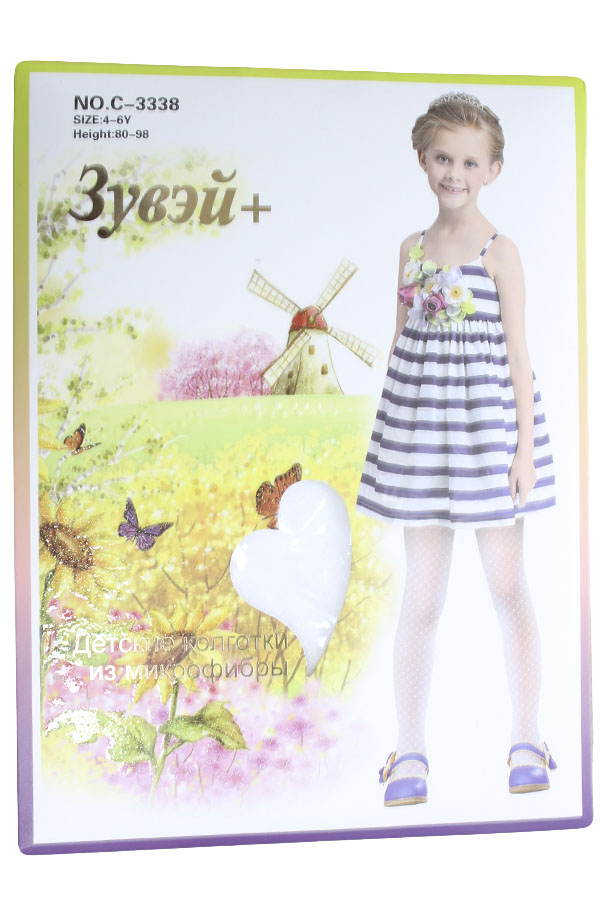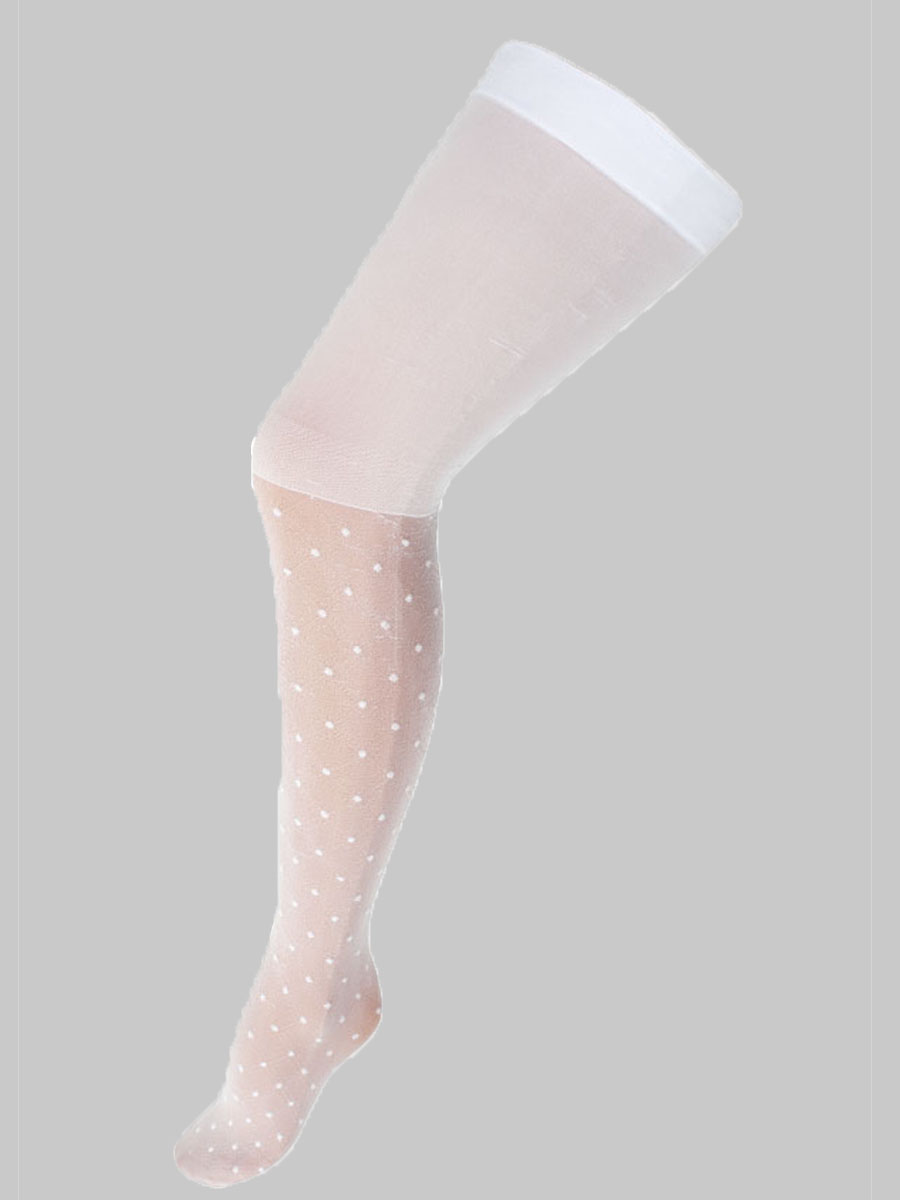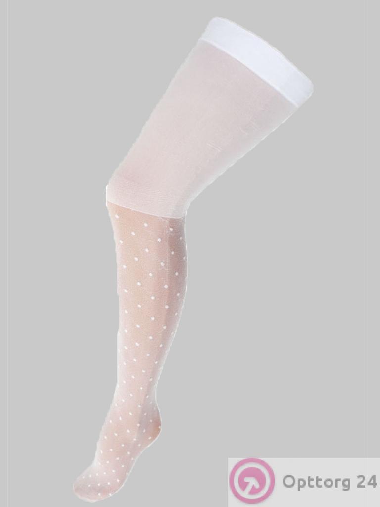 Детские колготки из микрофибры с рисунком в виде мелкого гороха на нижней части изделия.
