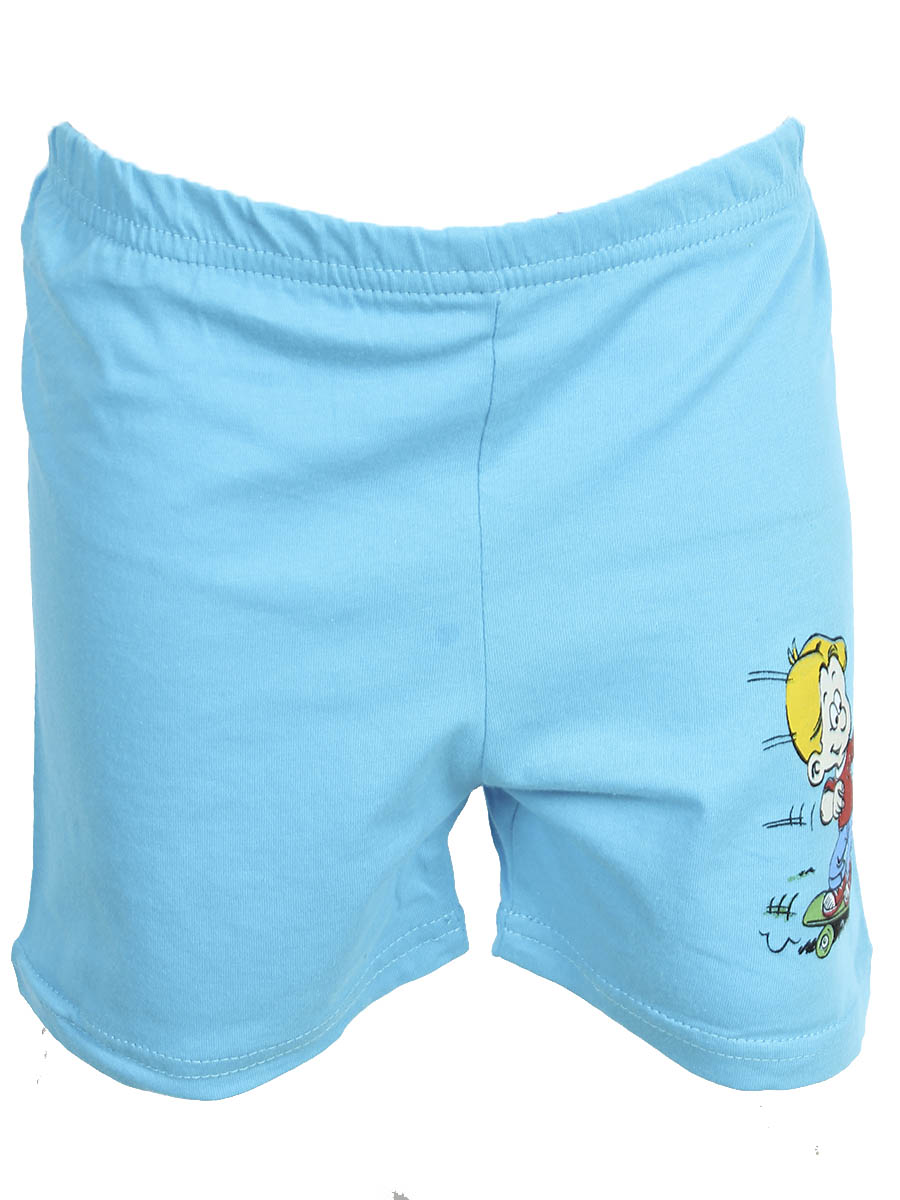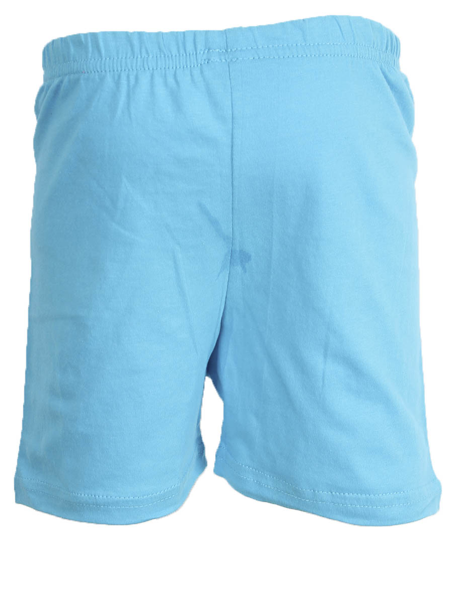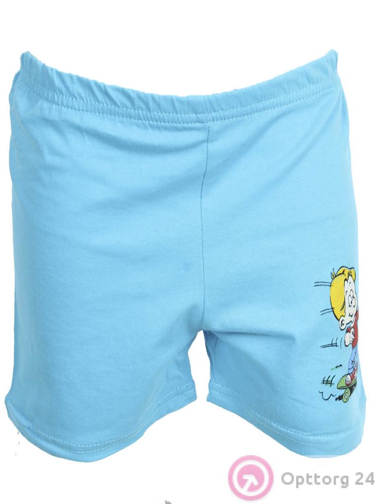 Детские шорты небесного цвета с принтом на левой части изделия оптом