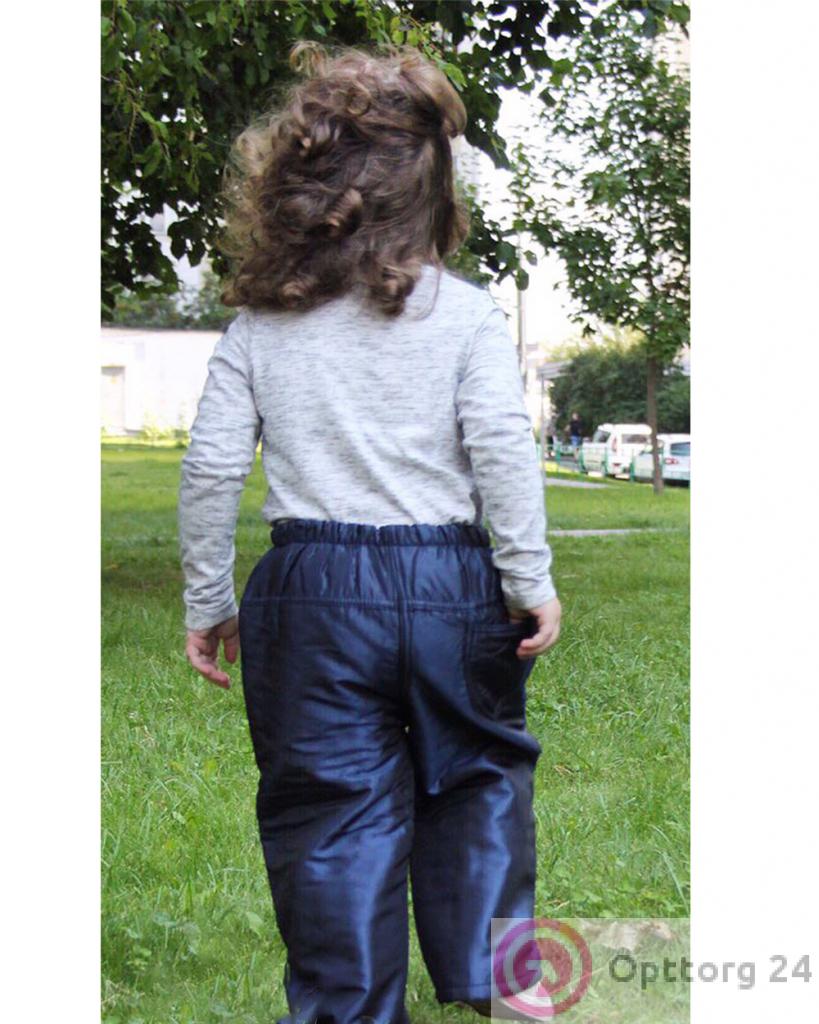 Теплые детские штанишки с начесом внутри. Изделие пошито из водоотталкивающей ткани и декорировано вышивкой в виде бабочек. На поясе есть вшитая резинка, сзади небольшой карман.