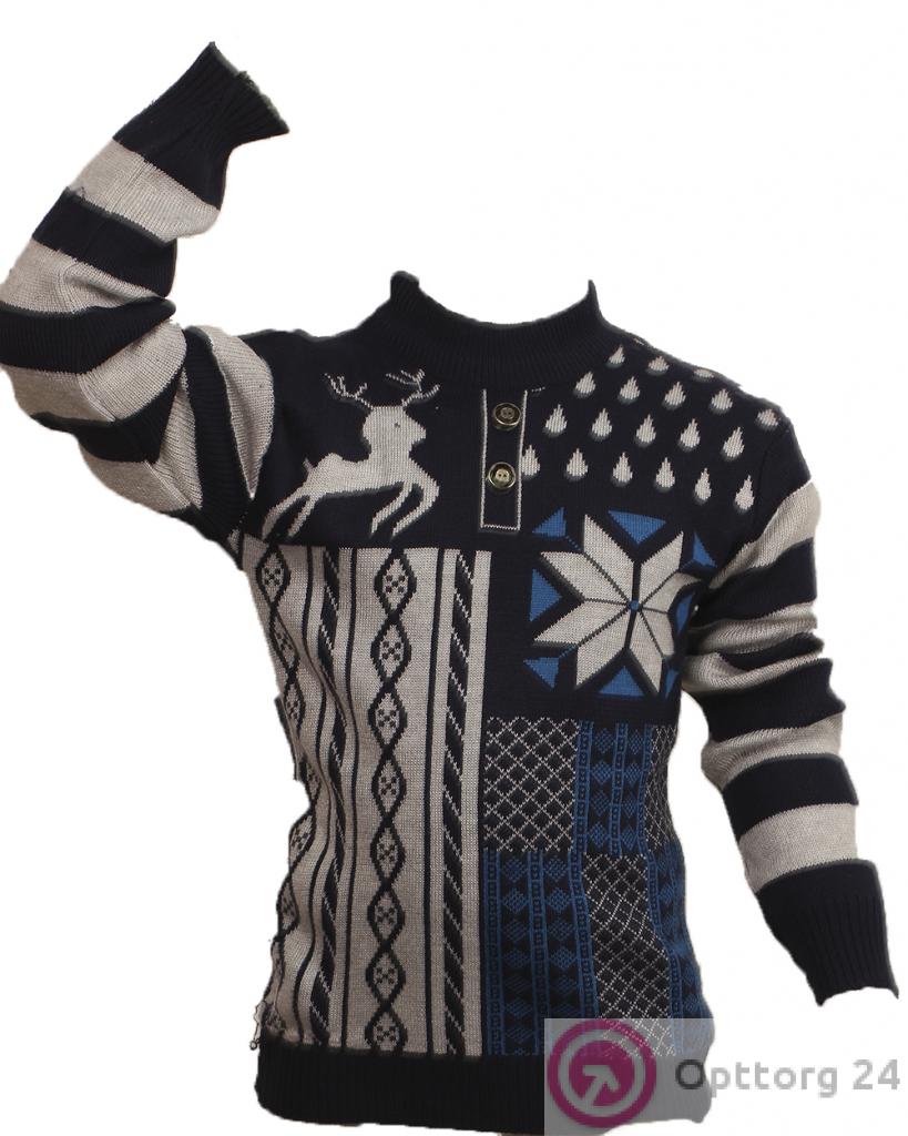 Детский джемпер черного цвета с оленем и снежинкой. оптом