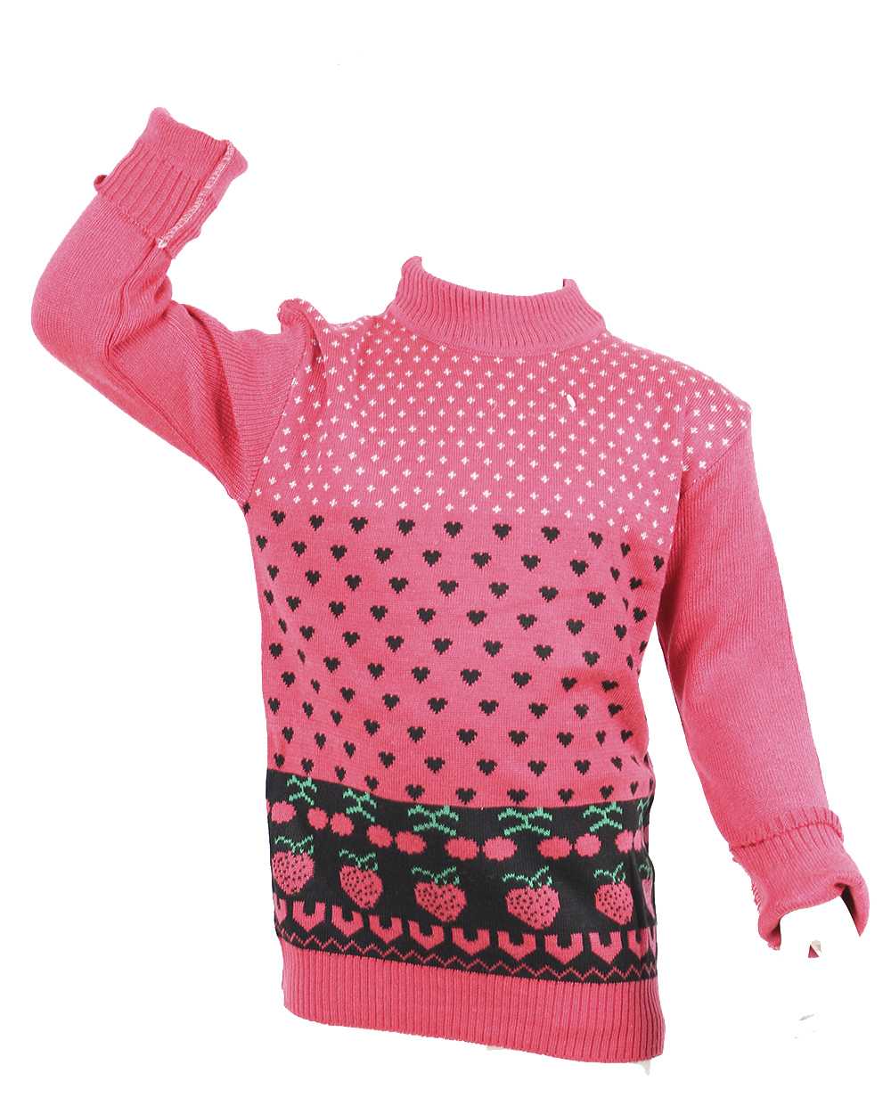 Джемпер детский 1-3 года малинового цвета с принтом в виде клубничек и сердечек.