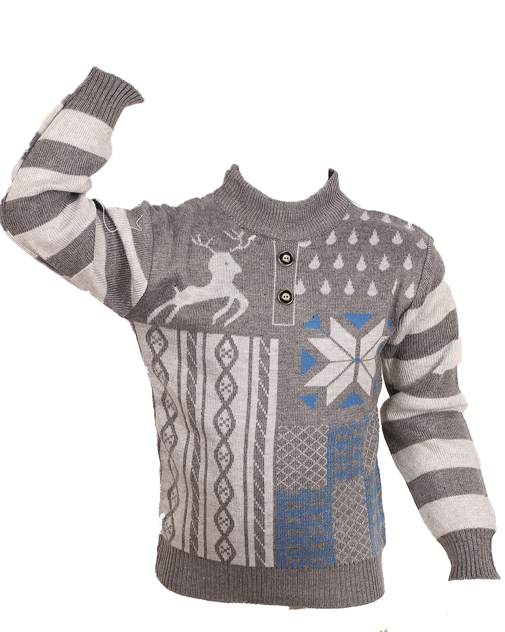 Детский джемпер серого цвета с принтом в виде снежинки и геометрических фигур