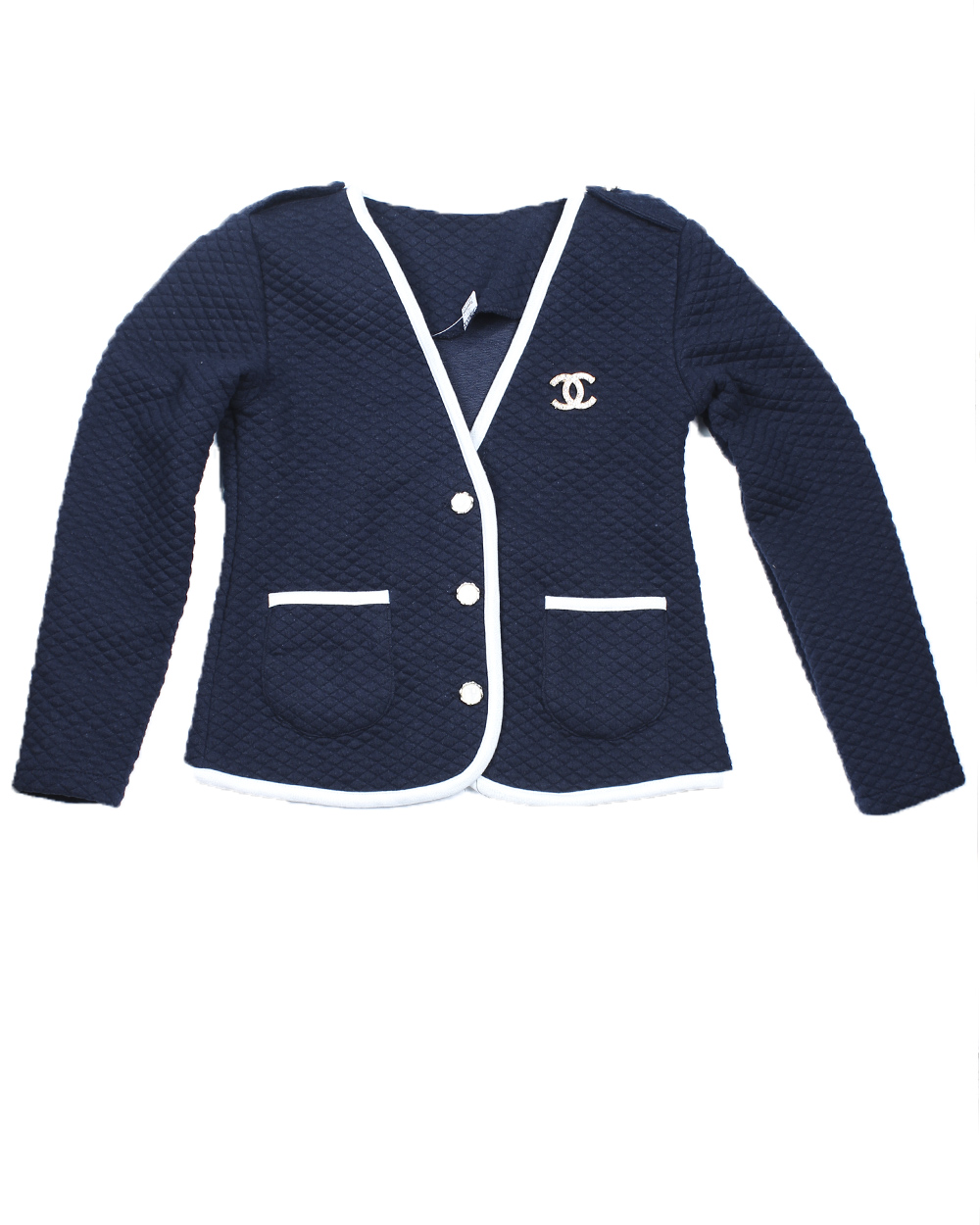 Детский джемпер для девочки синего цвета с белым кантиком.