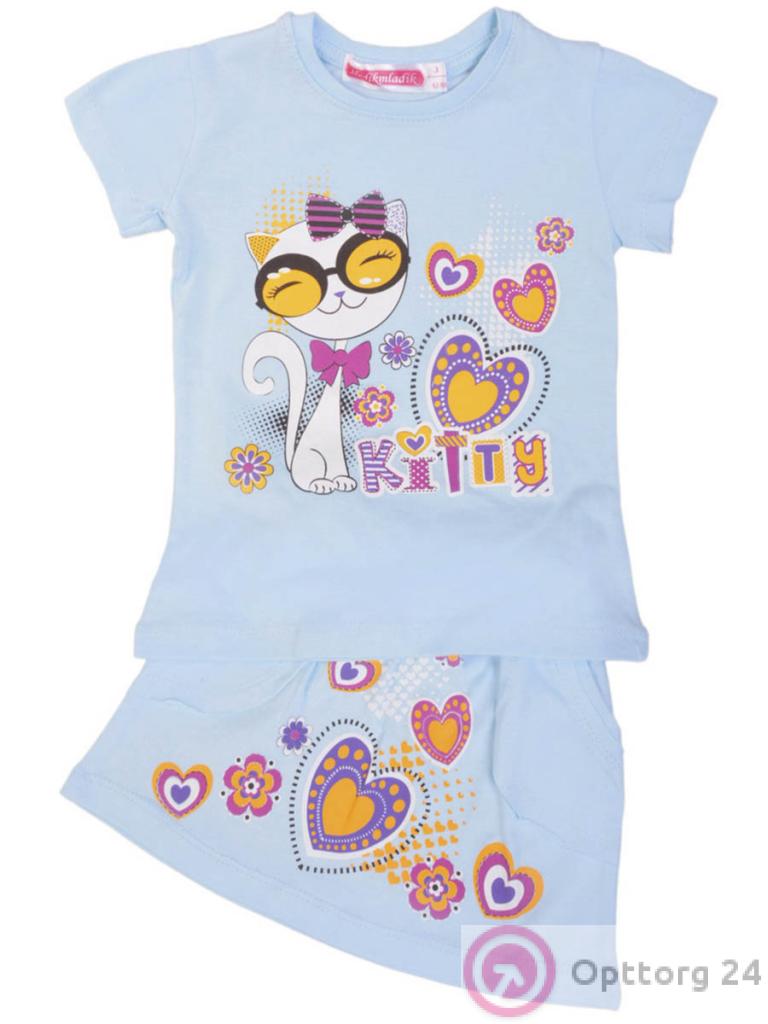 Детский комплект для девочки, модель голубого цвета с принтом. оптом