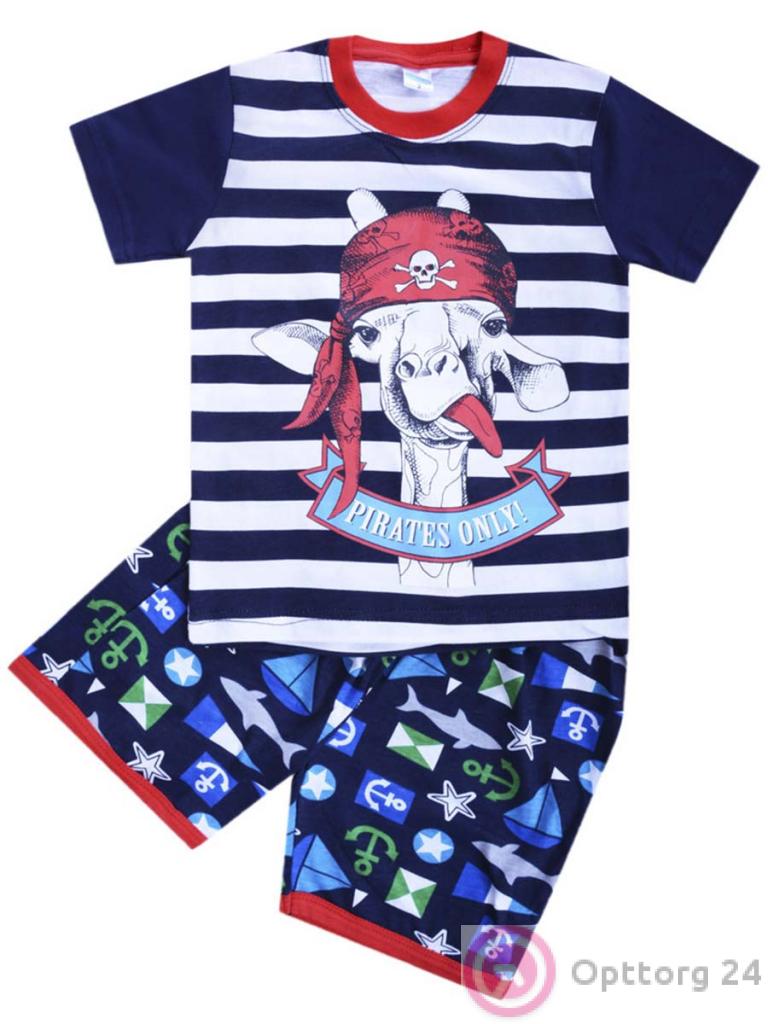 Костюм детский синего цвета в белую горизонтальную полоску.