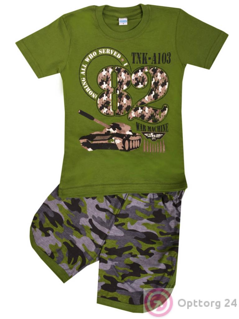 Детский костюм для мальчика оливковая футболка+ защитные шорты. оптом