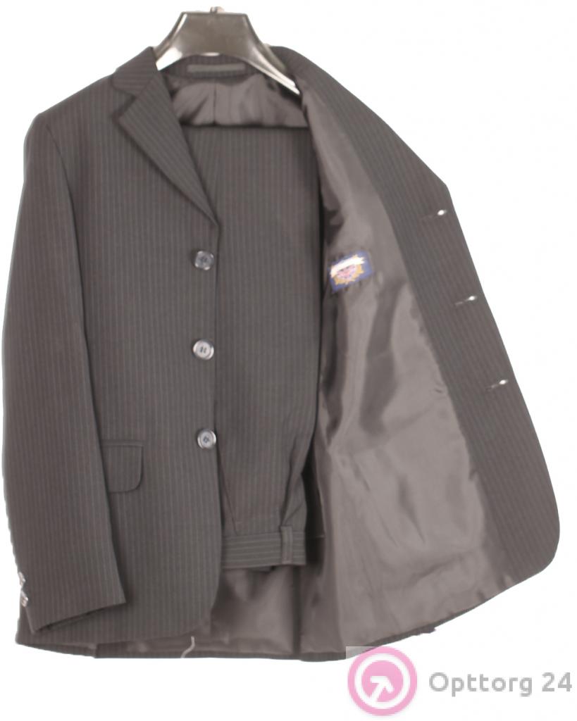 Детский костюм темно серого цвета с вертикальной полоской голубого цвета. оптом