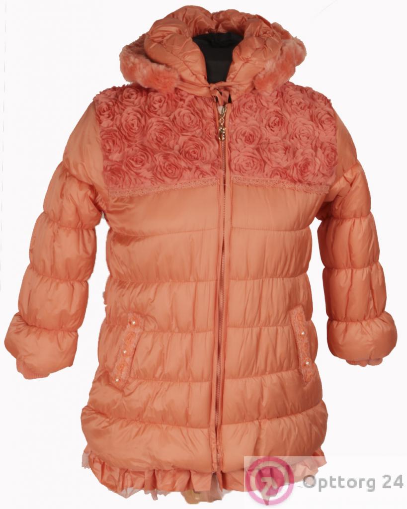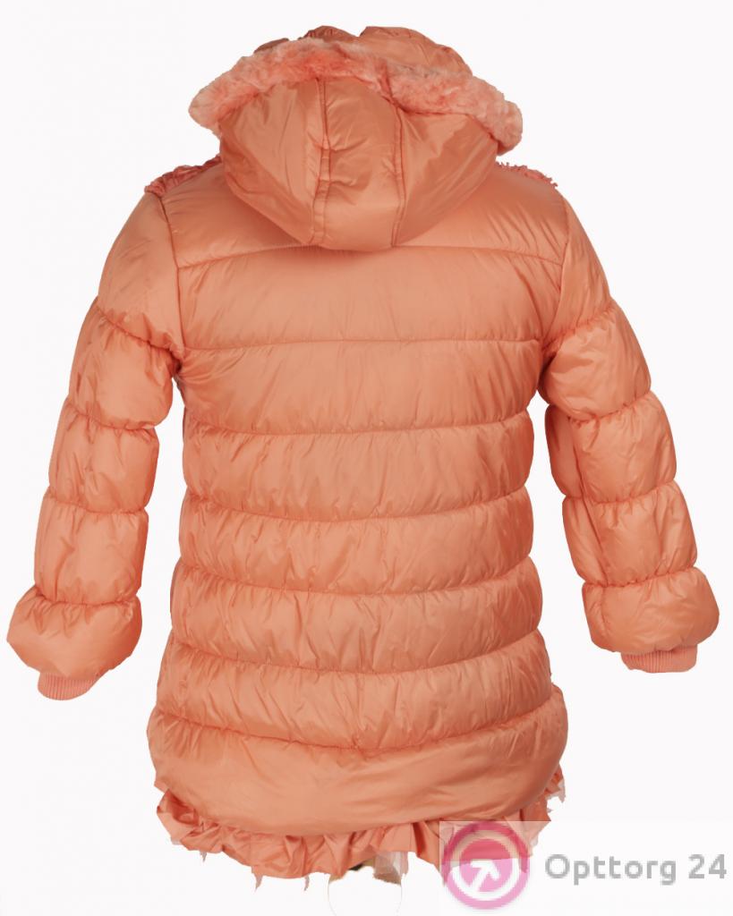 Детский пуховик для девочки персикового цвета с пушком в области плеч оптом