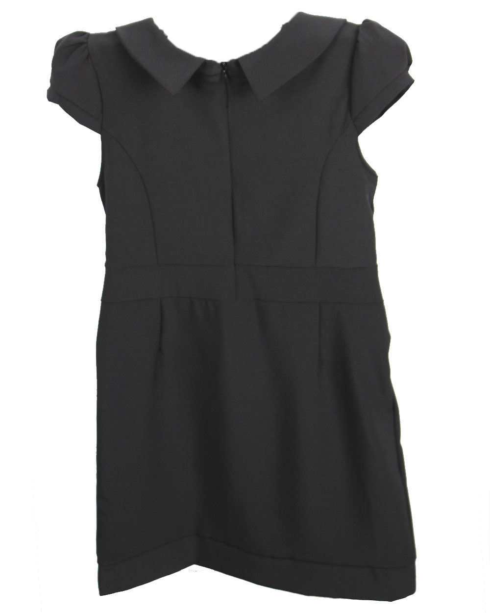 Детский сарафан прямого кроя для девочки. Модель черного цвета с коротким рукавом.
