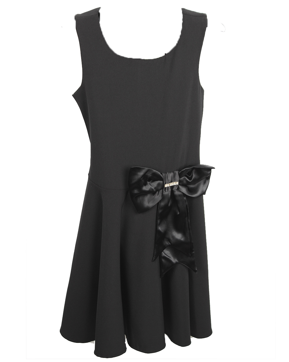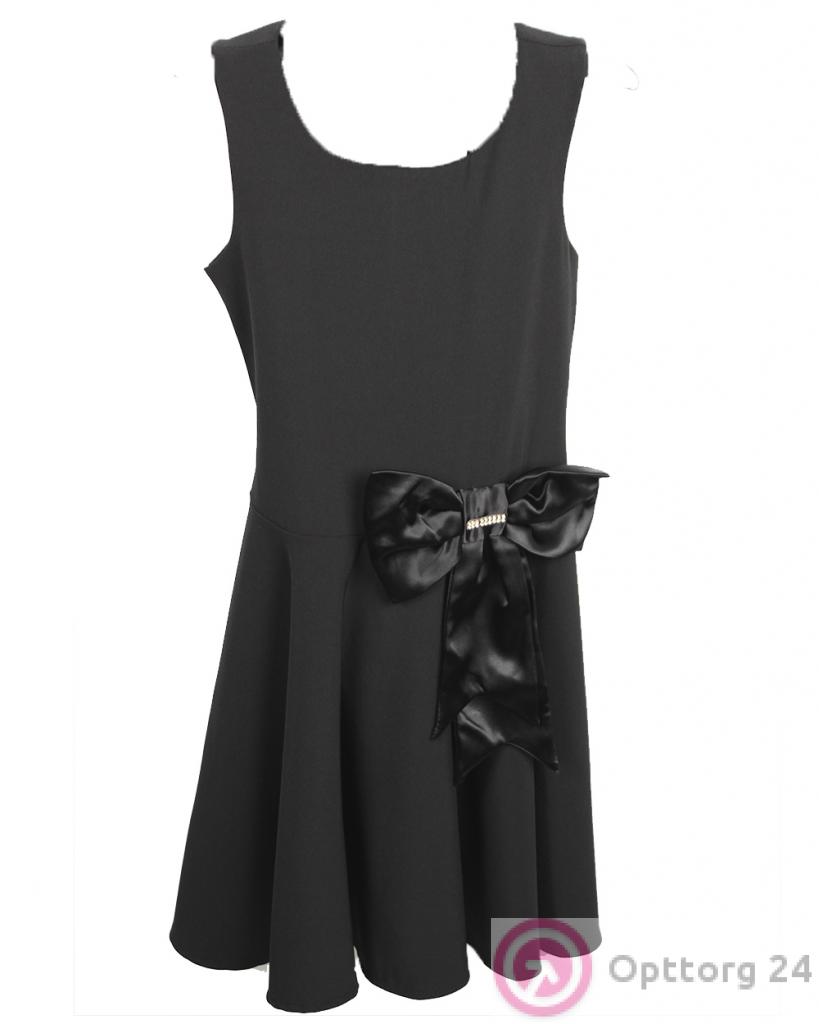 Сарафан детский школьная форма. Модель черного цвета с элегантным бантом на поясе изделия.