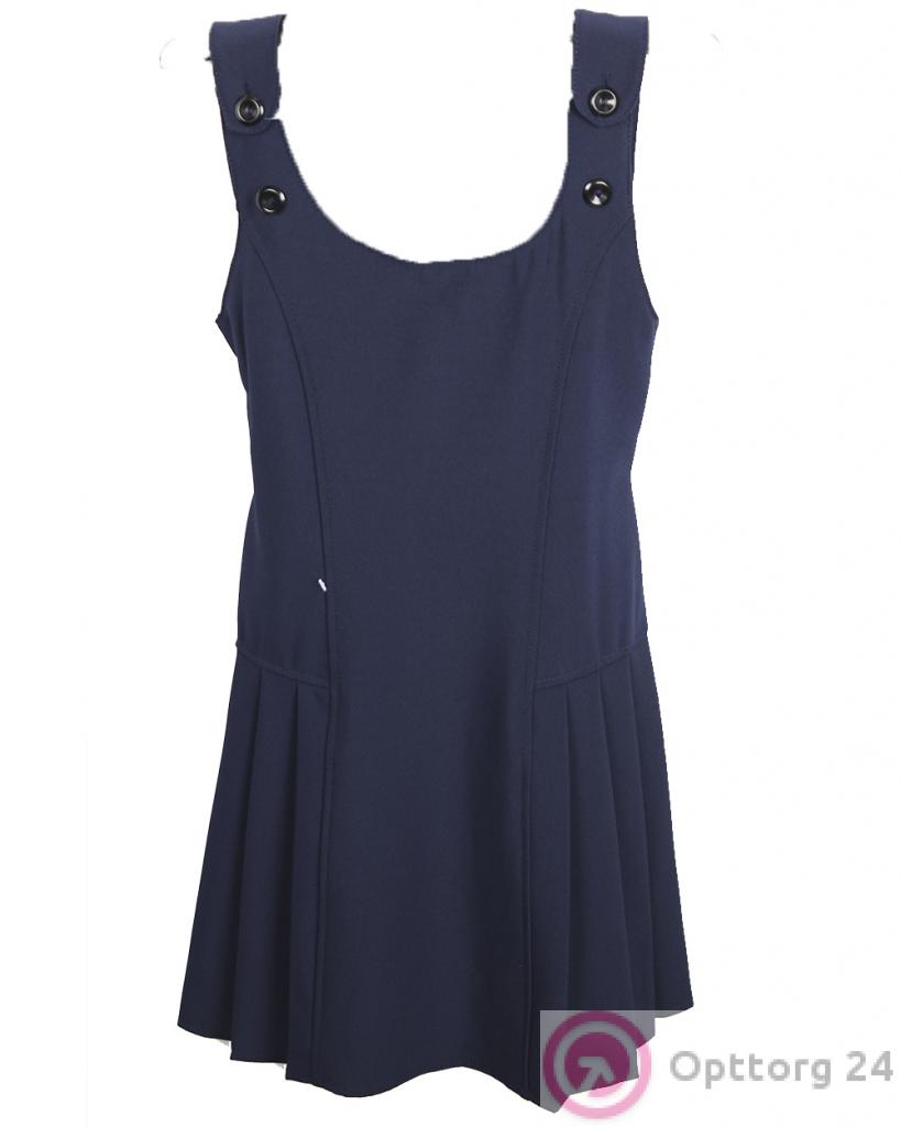 Сарафан детский синего цвета с пуговицами на лямках модели.
