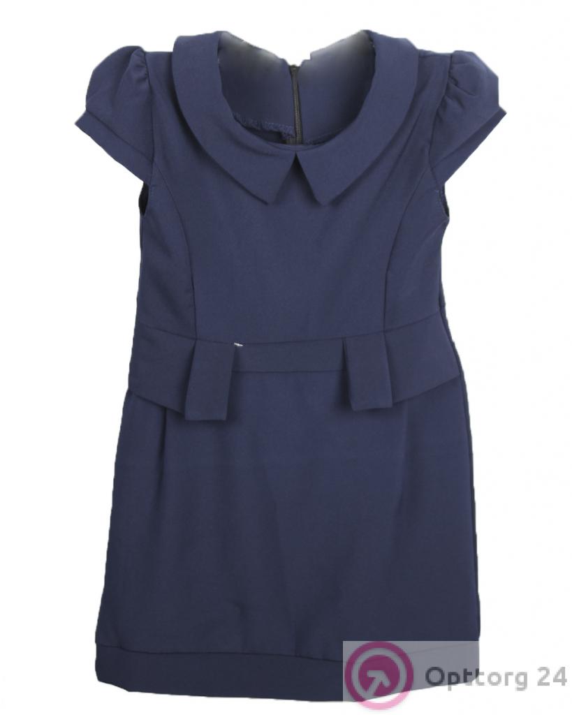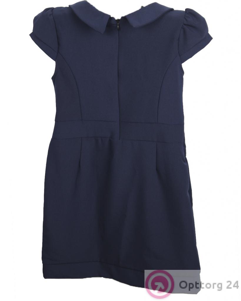 Детский сарафан прямого кроя для девочки. Модель тёмно-синего цвета с коротким рукавом.