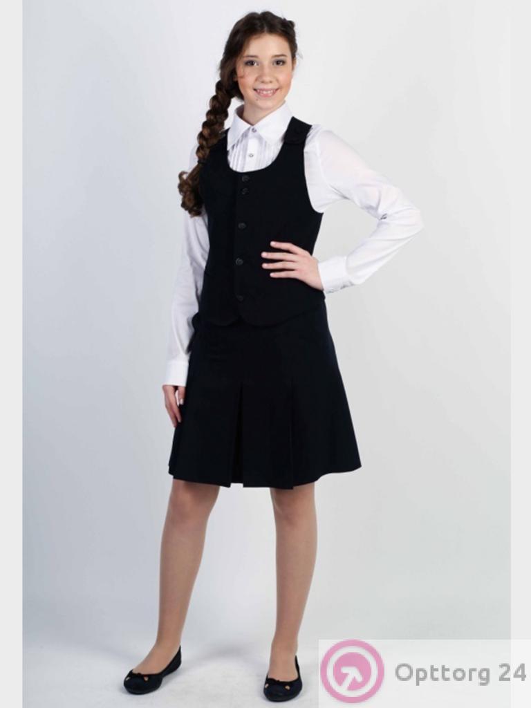 Сарафан школьный темно-синего цвета с классической юбкой до колен.