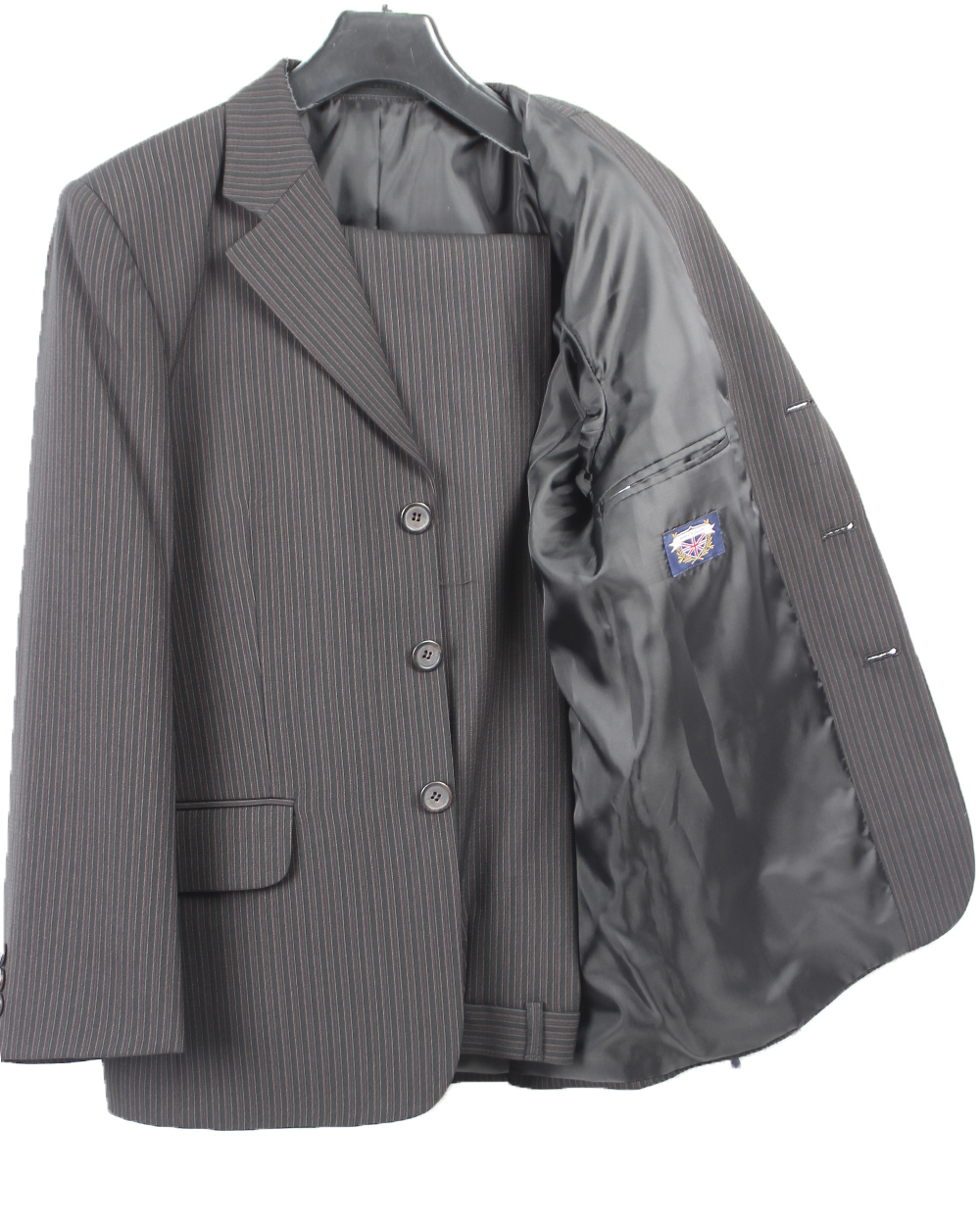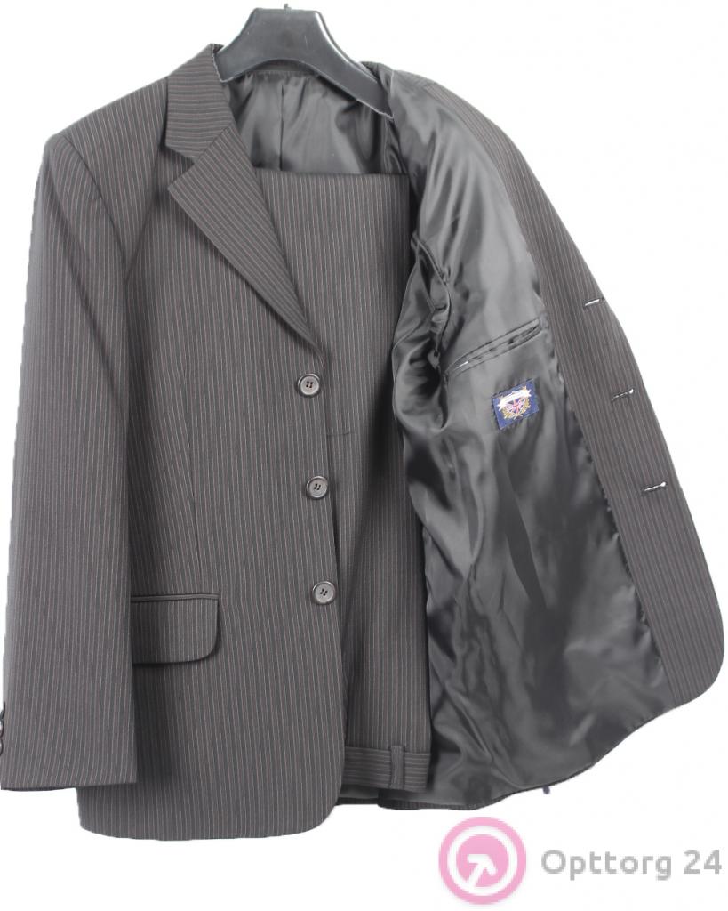 Описание: Детский школьный костюм черного цвета с коричневой, еле заметной, вертикальной полоской.