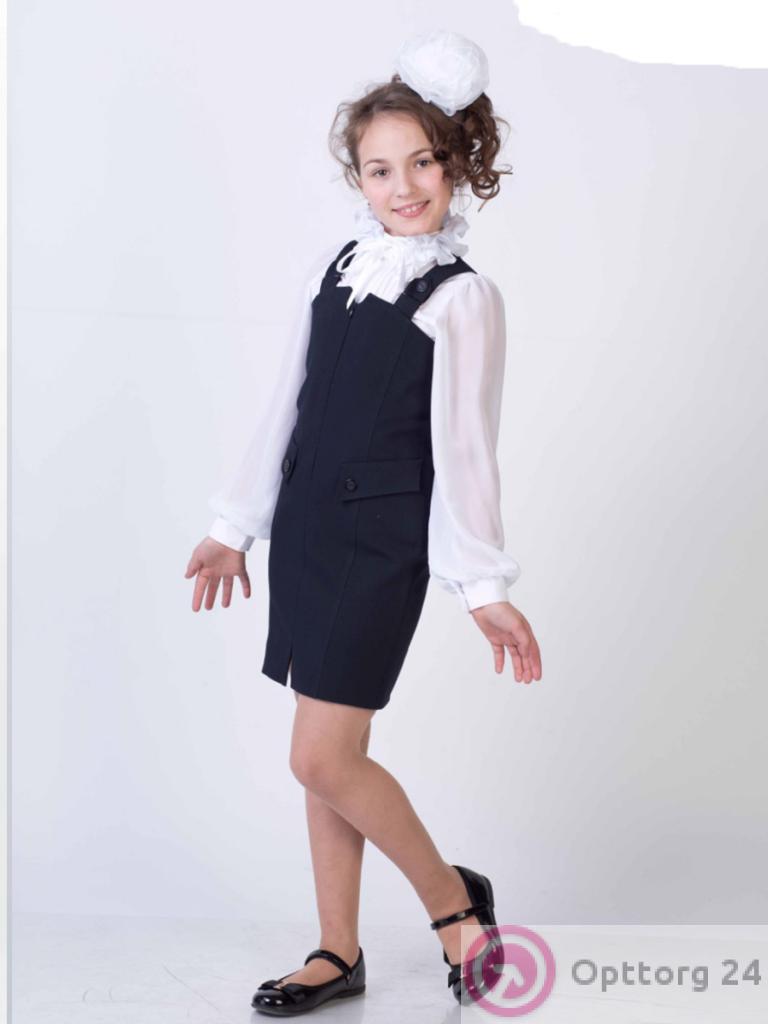 Сарафан для девочки школьная модель черного цвета на лямках.