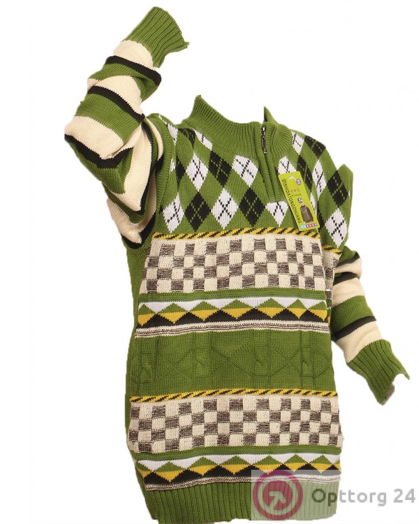 Детский свитер ярко-зеленого цвета с геометрическим рисунком. оптом