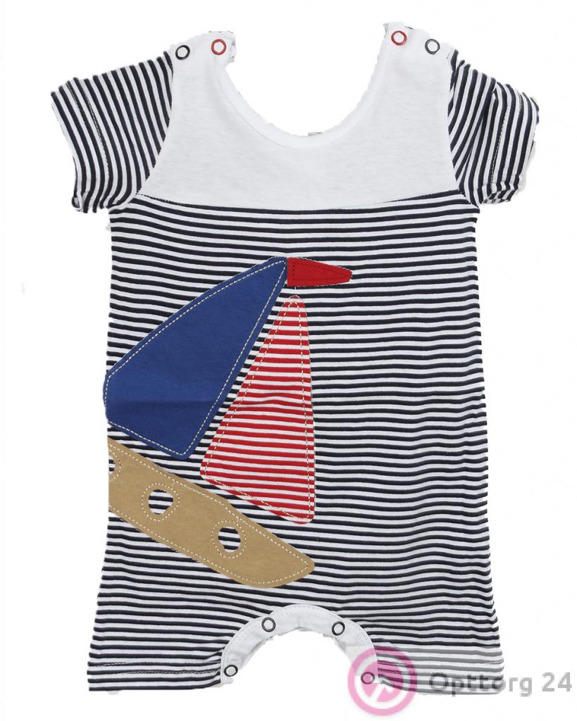 Боди детское черно-белого цвета с принтом в виде корабля.
