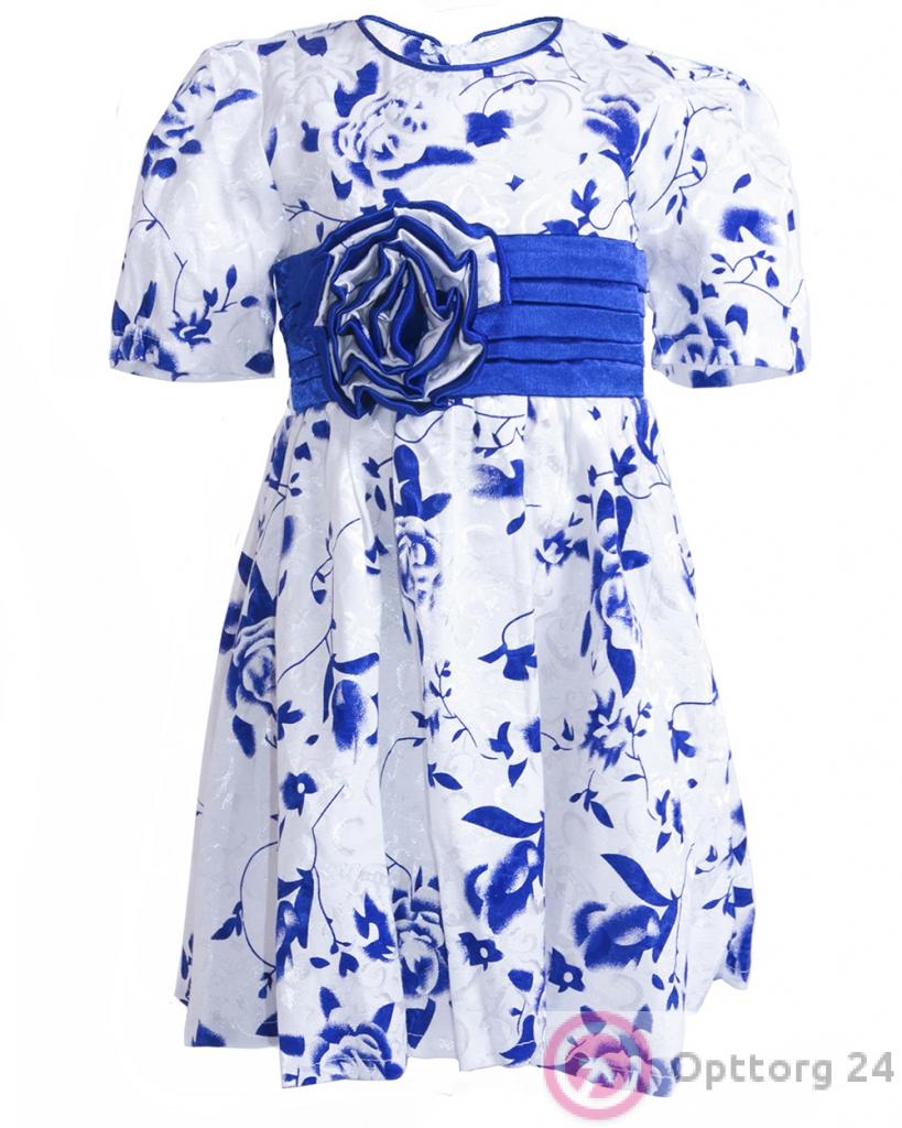 Детское платье белое с синими розами оптом