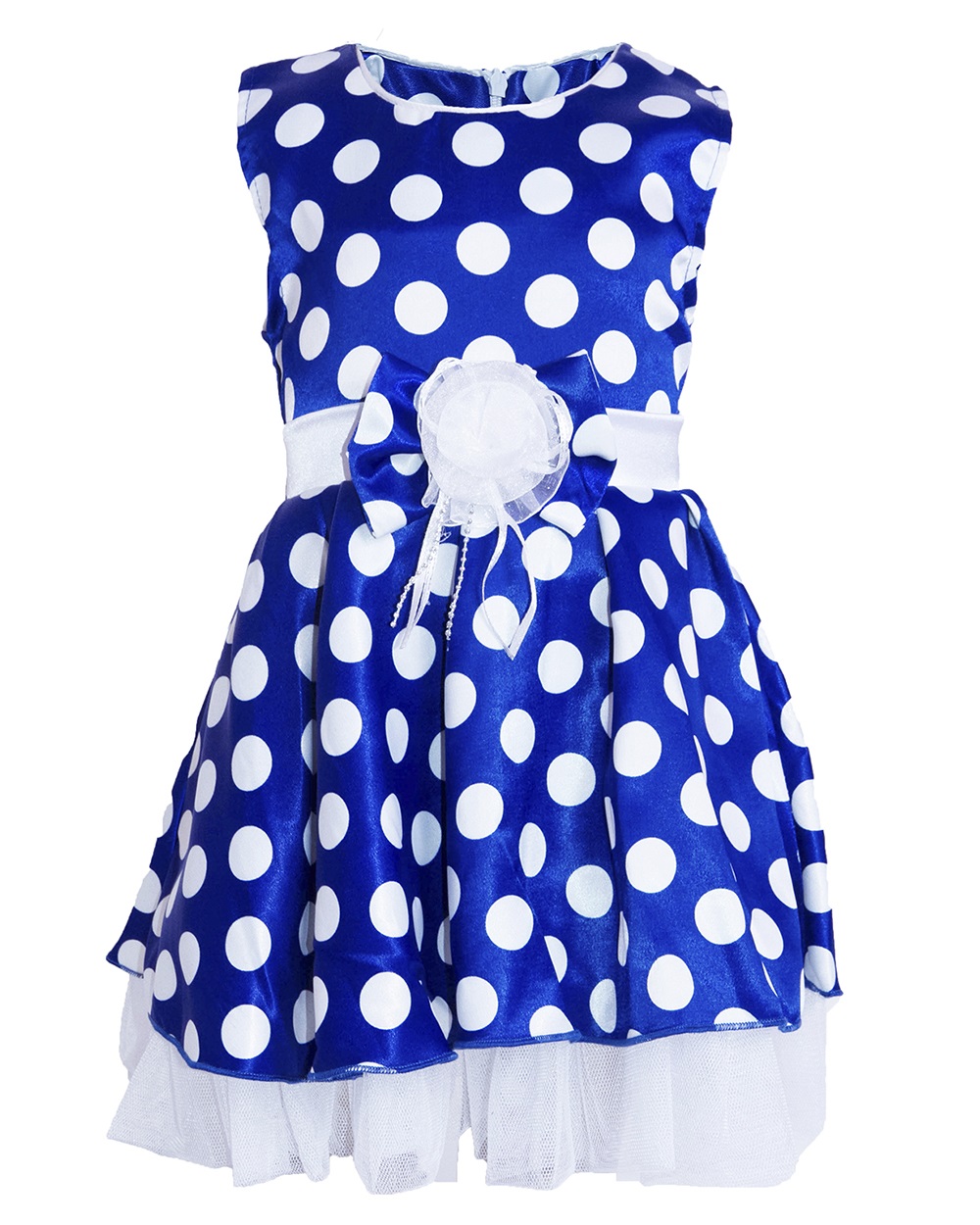 Красивое детсоке платье в крупные горохи. В дополнение к нему идет пиджак, контрасного белого цвета. Классический пошив и модная расцветка изделия подойдет практически любой девочке, независимо от цвета глаз, прически и телосложения.