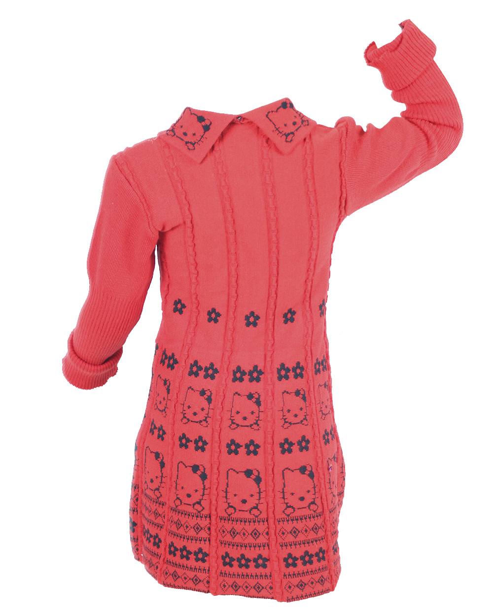 Детский джемпер -платье красного цвета с черным принтом в виде кошки/