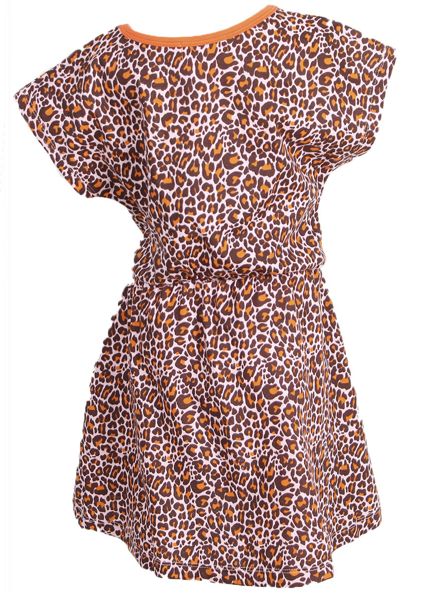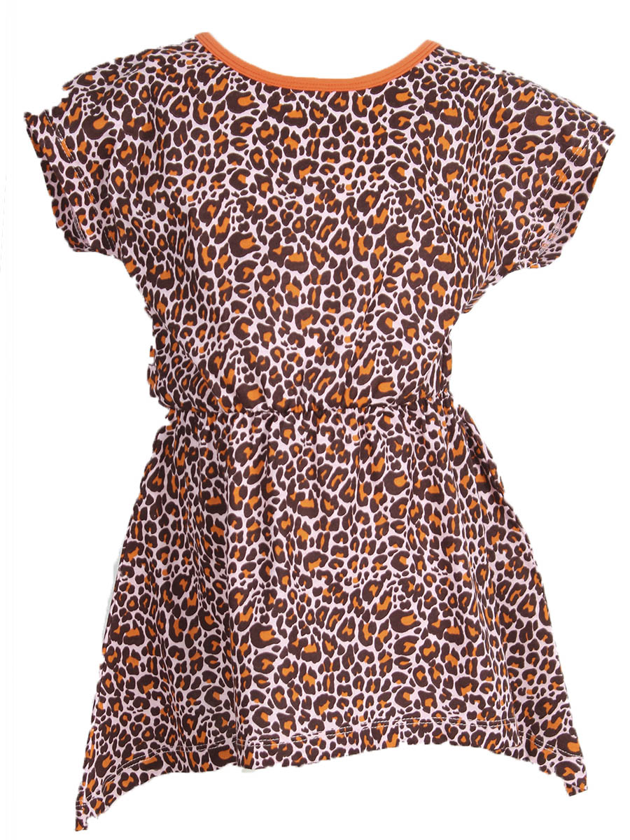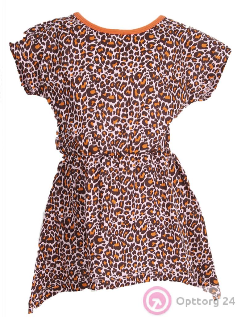 Детское платье леопардовой разцветки с оранжевой горловиной.