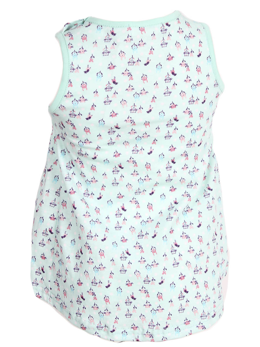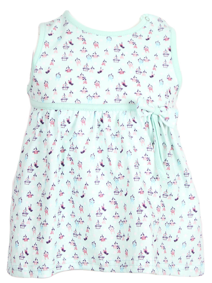 Сарафан детский нежно-голубого цвета с мелким рисунком по всей поверхности изделия.