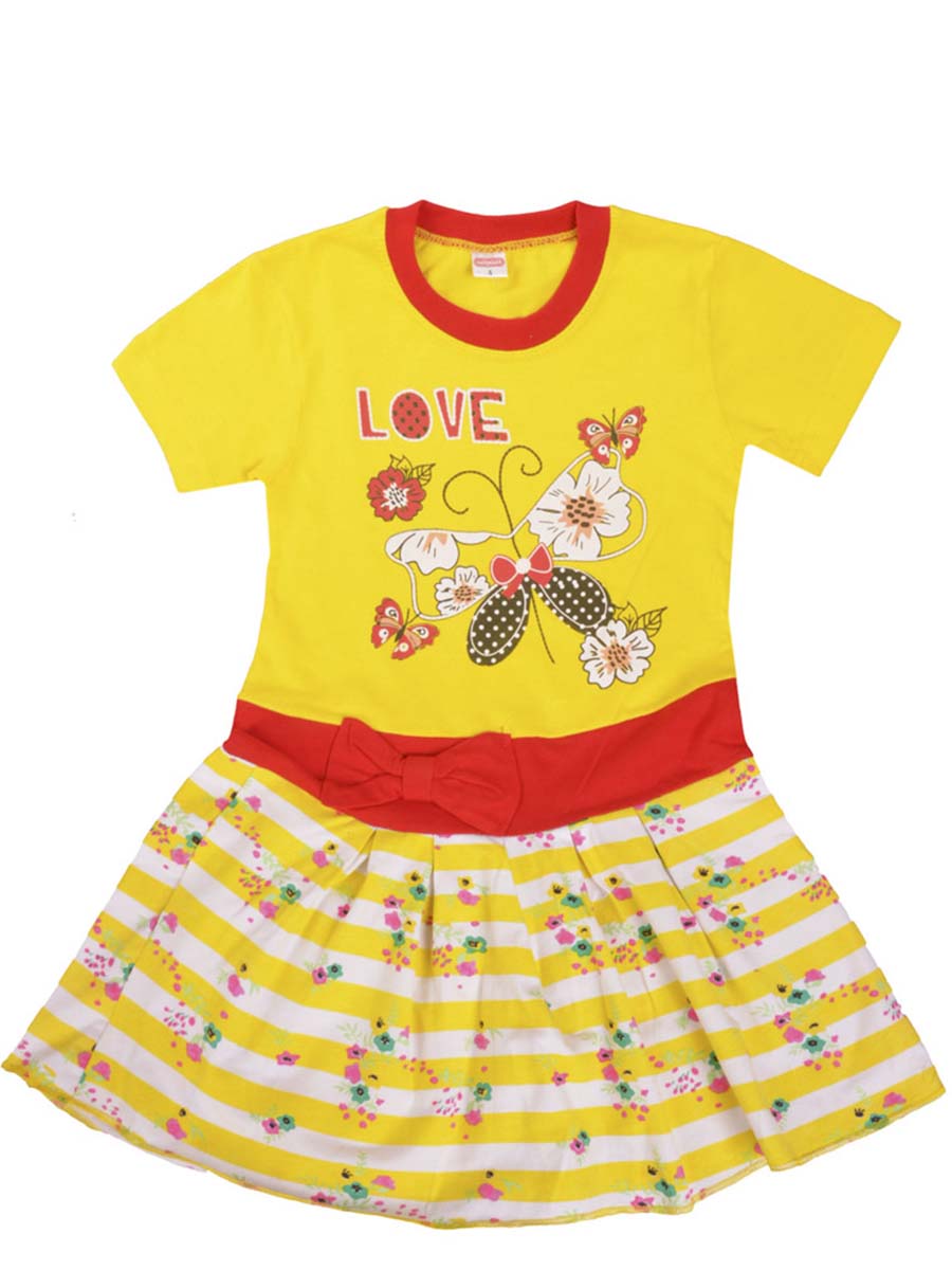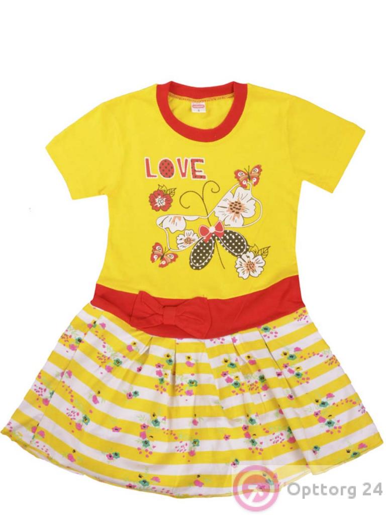 детское платье желтого цвета с красной окантовкой горловины. оптом