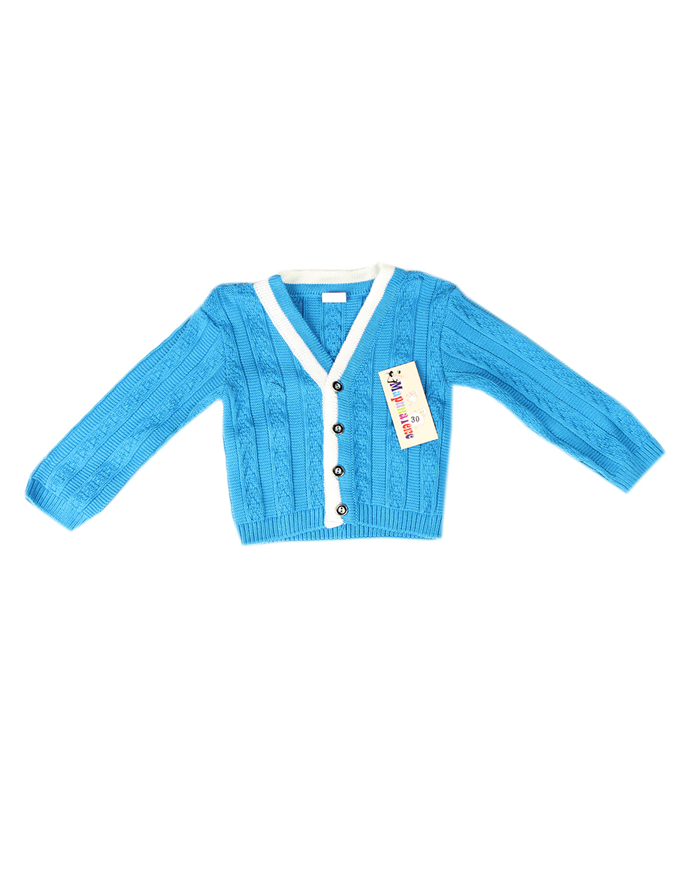 Детский джемпер на четыре пуговицы. Модель имеет прямой крой. Машинная вязка.
