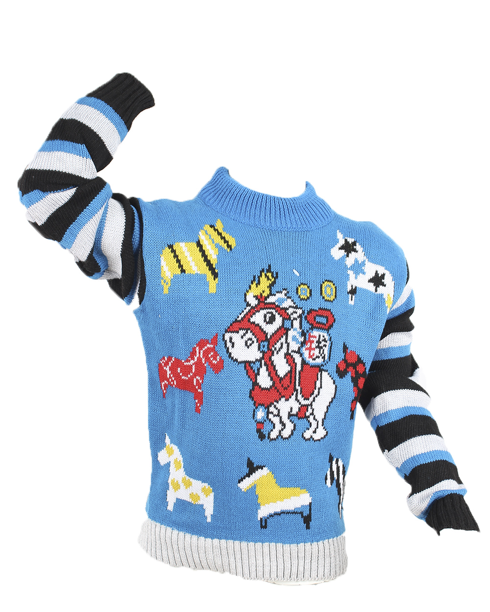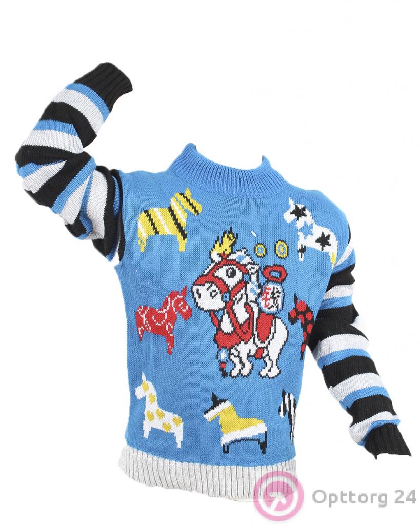 Детский джемпер голубого цвета с рисунком на передней чсти изделия в виде пони.