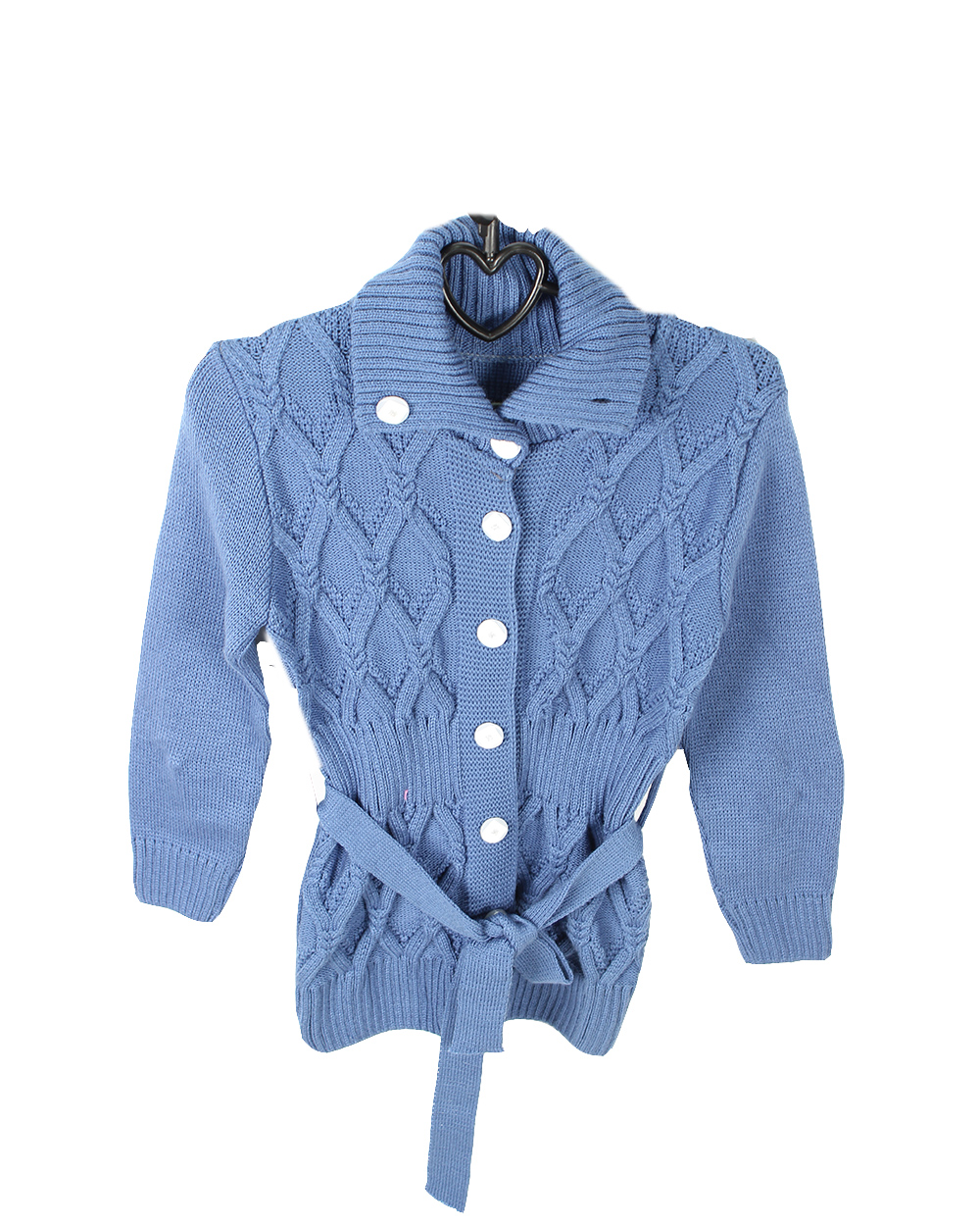 Детский джемпер голубого цвета для девочки. Изедлие имеет пояс на талии. Застегивается на пуговицы.