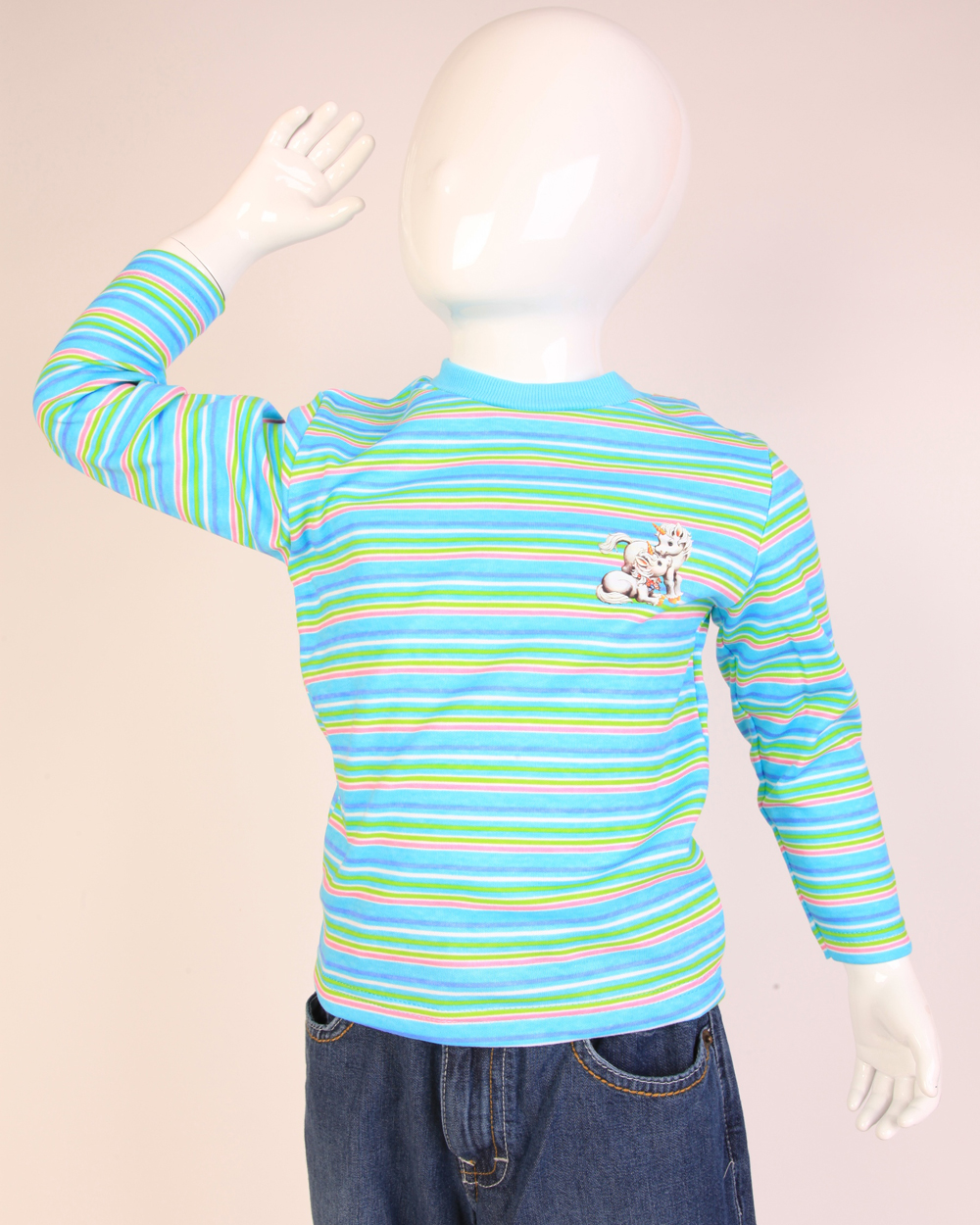 Морская тема этих полосочек разбавлена нотками волшебства в виде небольшого принта, изображающего маленького единорога с детенышем. Просто невозможно пройти мимо такого прекрасного джемпера.