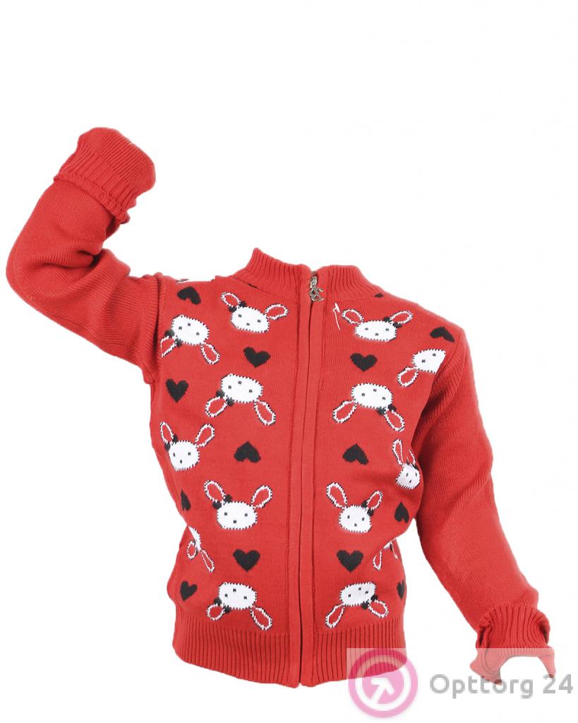 Джемпер детский красного цвета с зайчиками. оптом