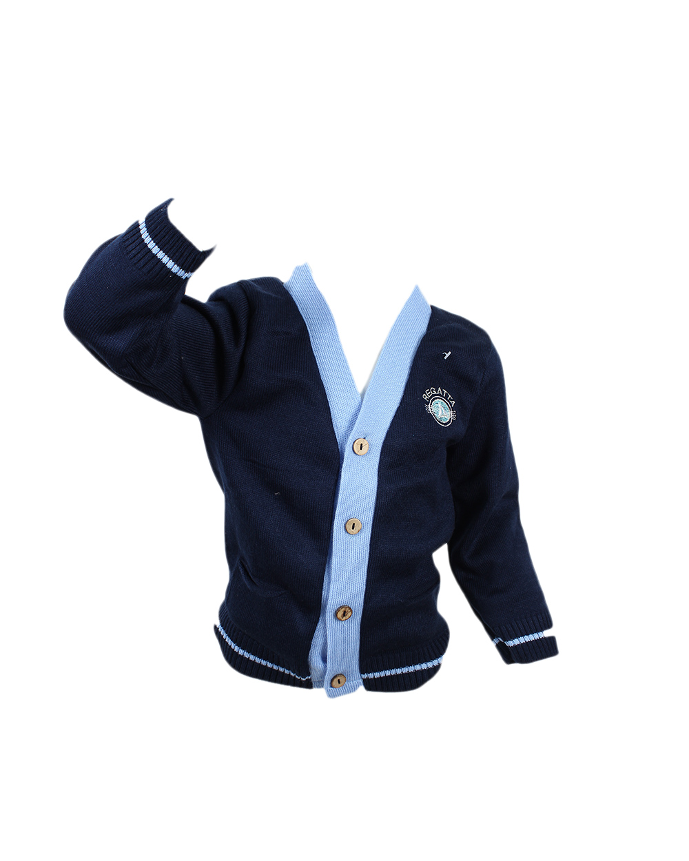 Модный детский джемпер с нашивкой на груди. Изделие застегивается на пуговицы.