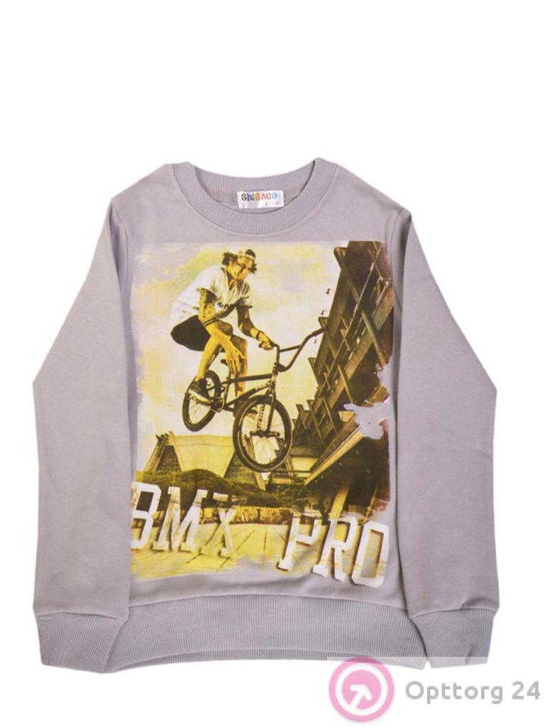 Джемпер детский серого цвета с принтом на передней части изделия. оптом