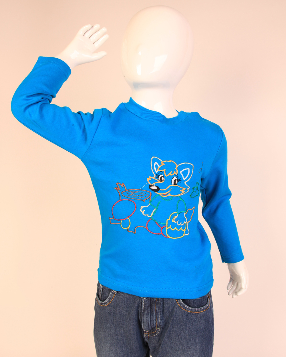 Джемпер детский синий с вышивкой "Лиса" оптом