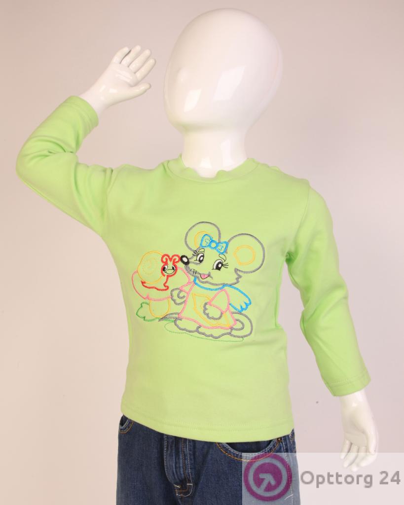Джемпер детский светло-зеленый с вышивкой "Мышка" оптом
